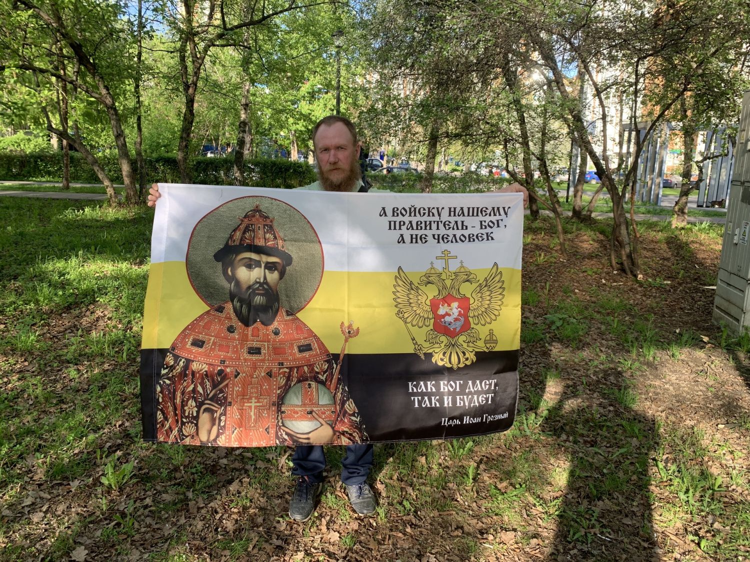 Флаг 117 Иоанн Грозный А войску нашему правитель Бог, а не человек 90х135 материал шелк для помещений