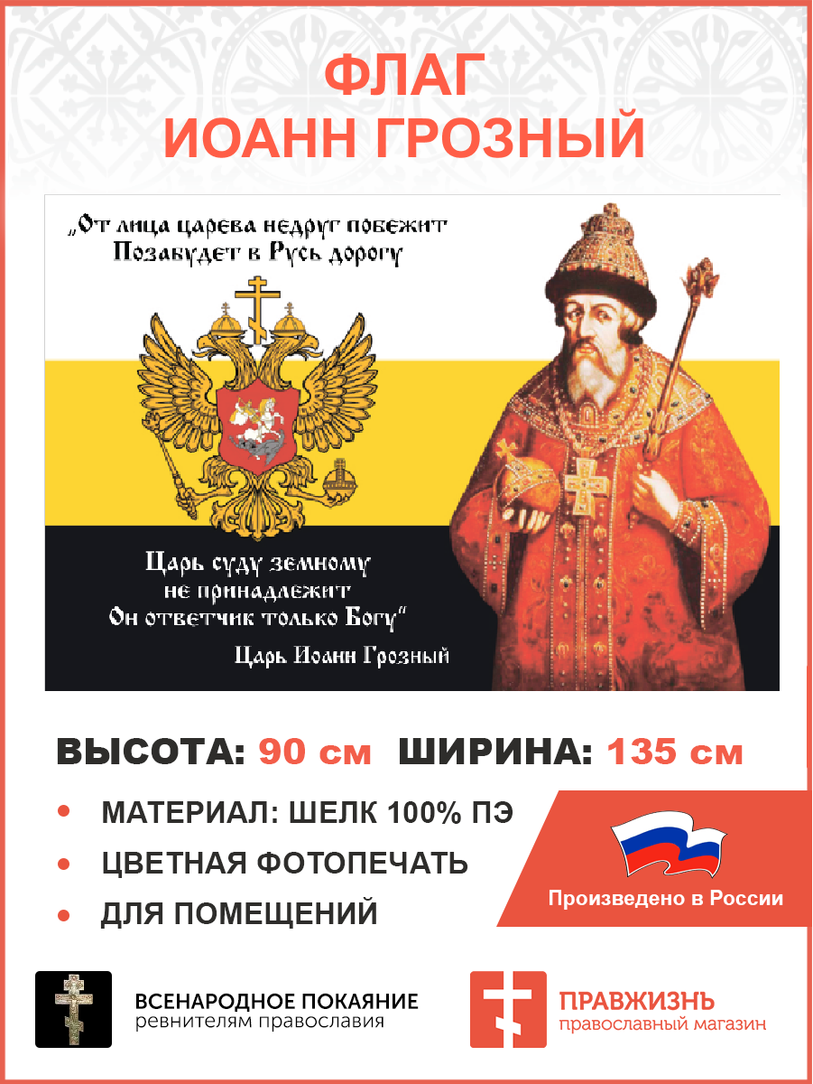 Флаг 120 Иоанн Грозный Царь суду земному не принадлежит 90х135 материал шелк для помещений
