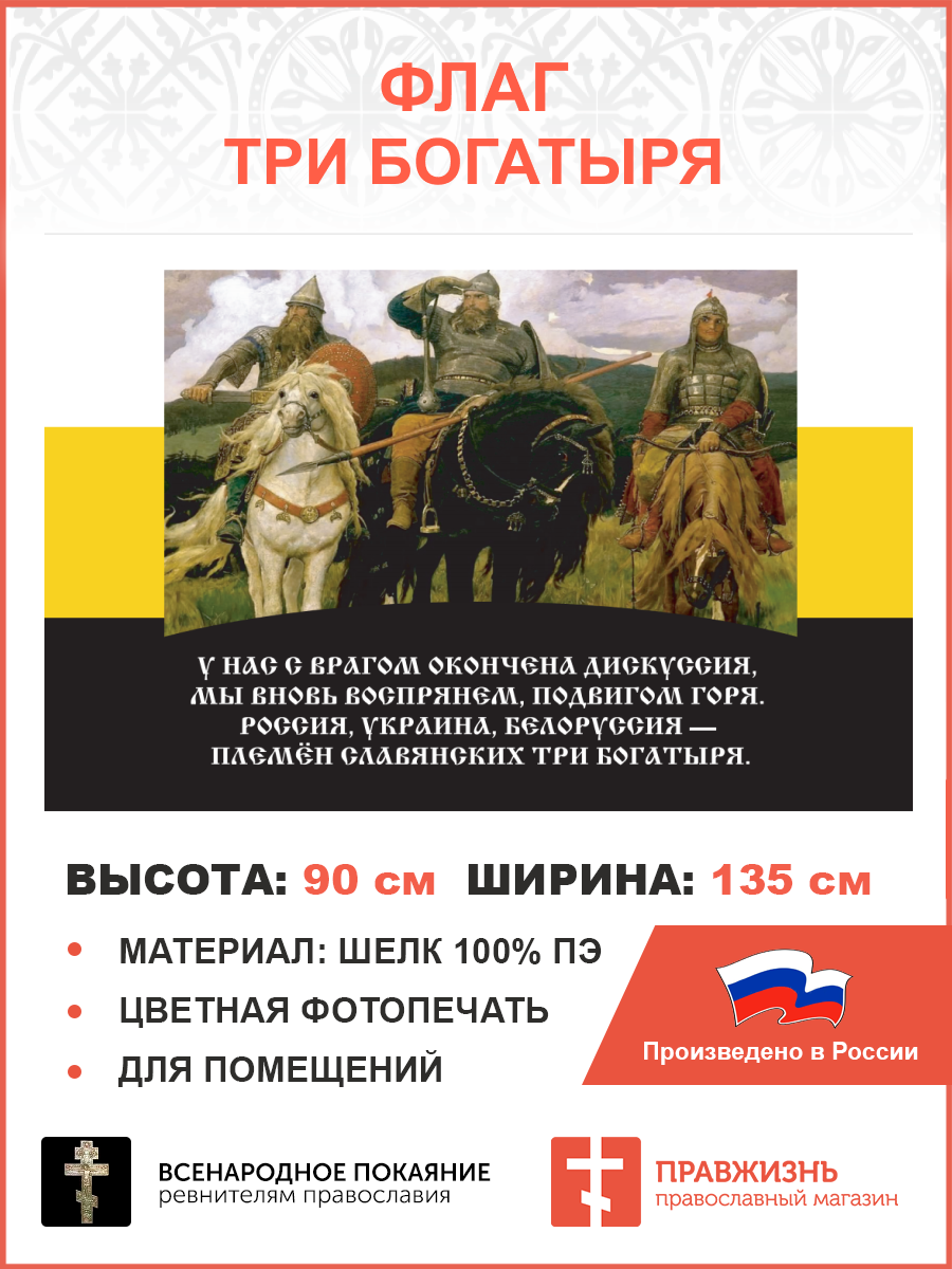 Флаг 133 Племён славянских три богатыря 90х135 материал шелк для помещений