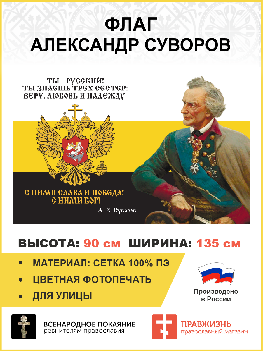 Флаг 226 Суворов Ты русский Ты знаешь трех сестер веру любовь и надежду 90х135 материал сетка для улицы