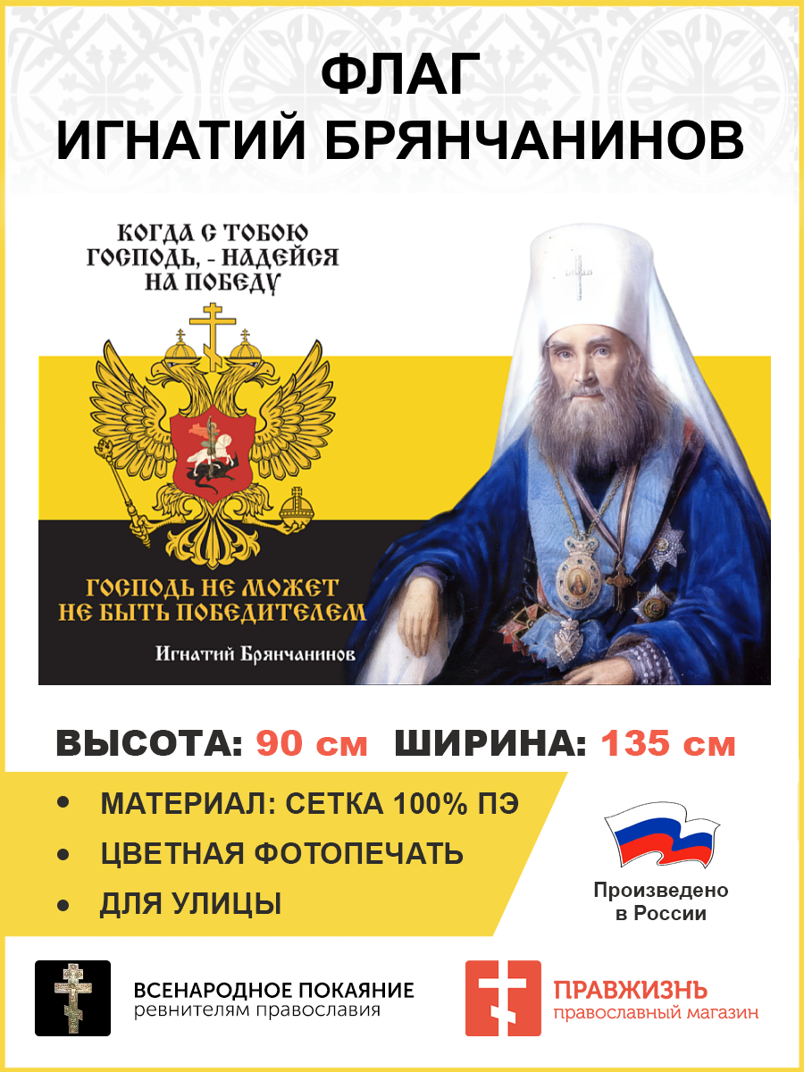 Флаг 279 Игнатий Брянчанинов Когда с тобою Господь Надейся на победу триколор 90х135 материал сетка