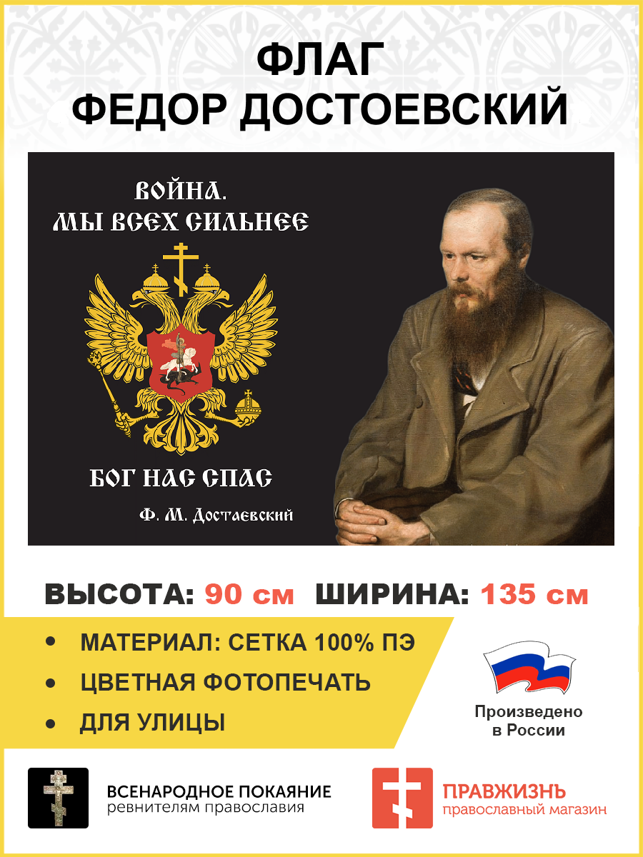 Флаг 291 Достоевский Мы всех сильнее Бог нас спас триколор 90х135 материал сетка для улицы