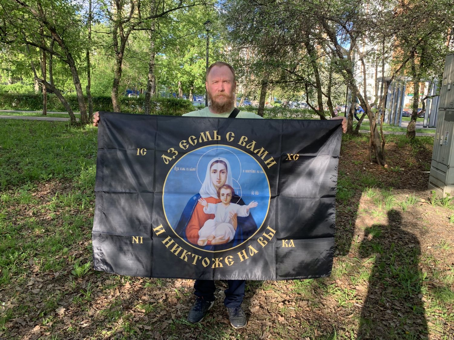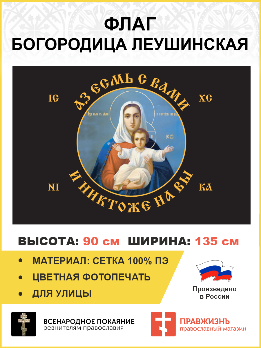 Флаг 101 Азъ есмь с вами и никтоже на вы, по контуру, 90х135, материал сетка для улицы