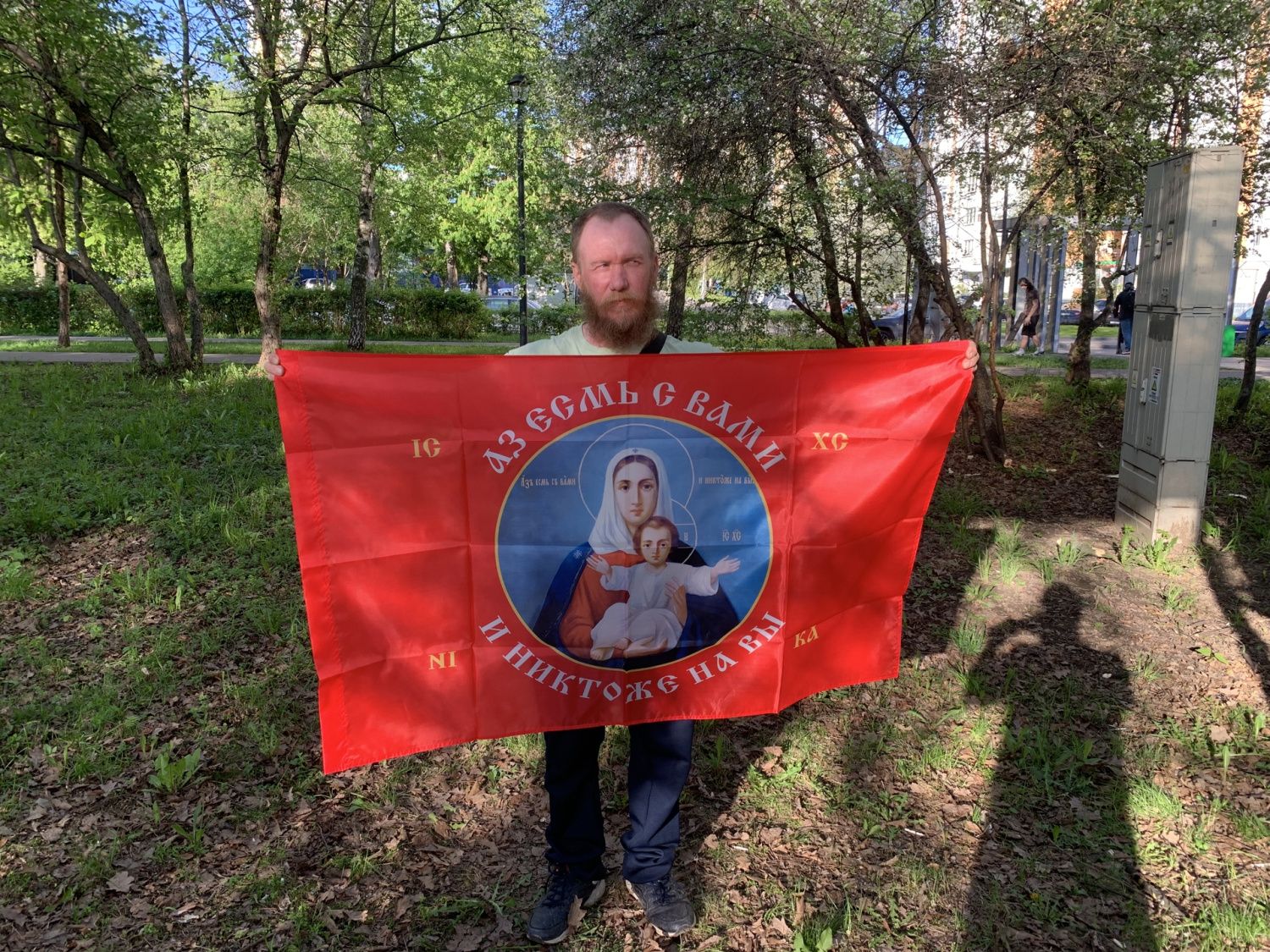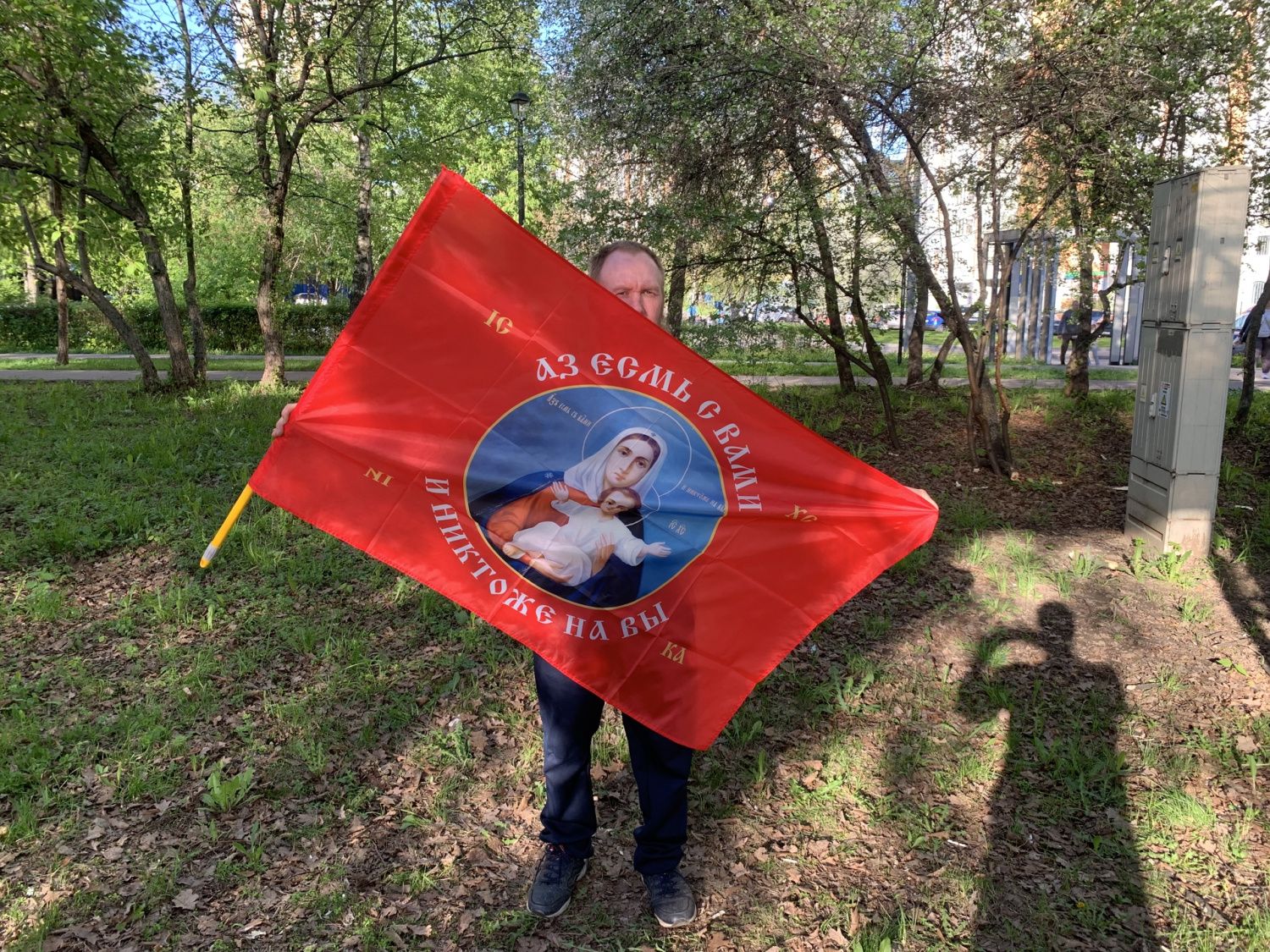 Флаг 101_1 Азъ есмь с вами и никтоже на вы, по контуру, 90х135, материал сетка для улицы