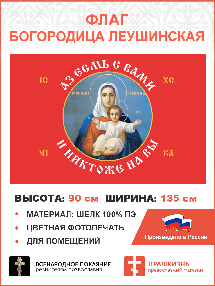 Флаг 101_1 Азъ есмь с вами и никтоже на вы, по контуру, 90х135, материал шелк для помещений