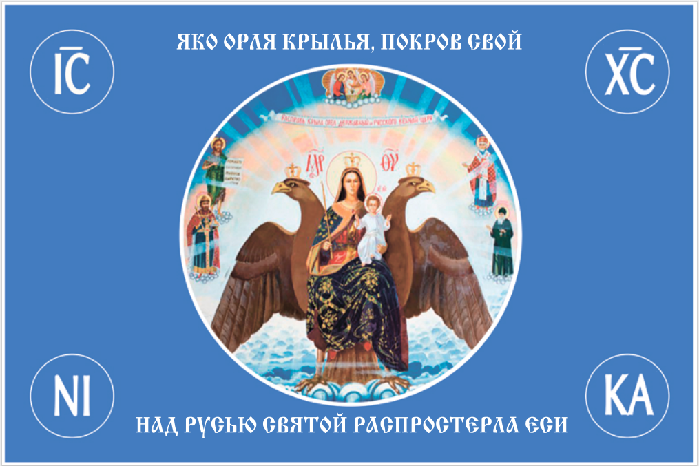 Флаг 122 Богородица Державная покаяная Покров Свой над Русью Святой 90х135 материал сетка для улицы