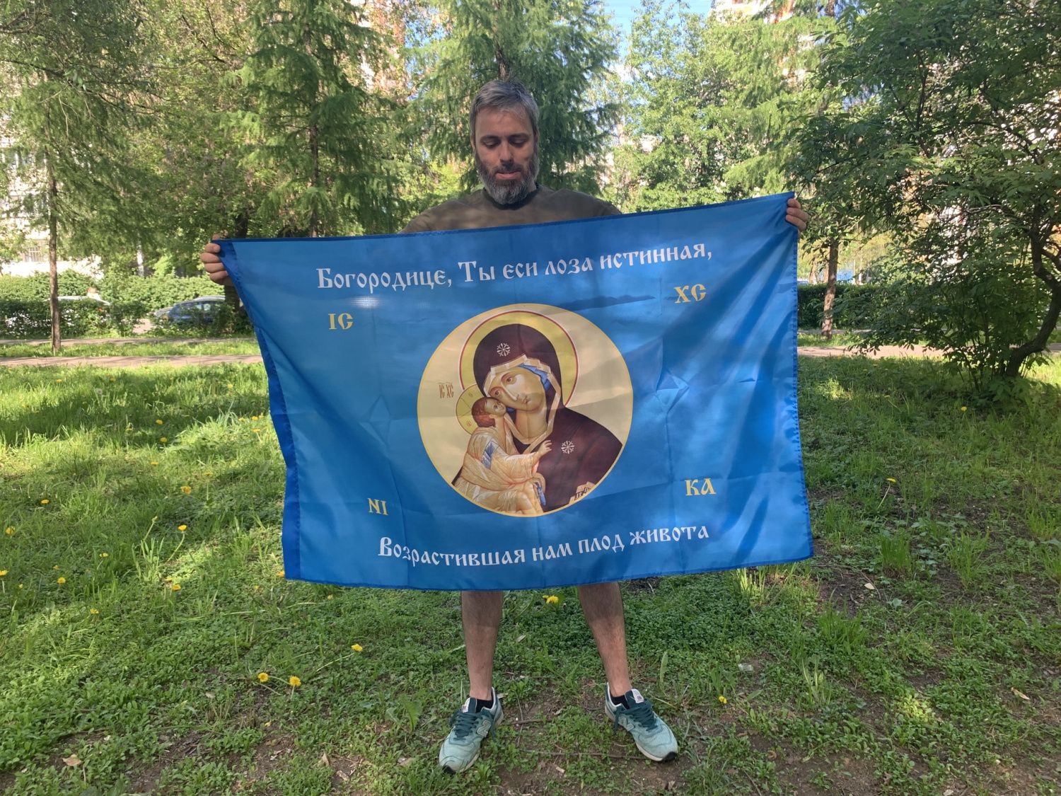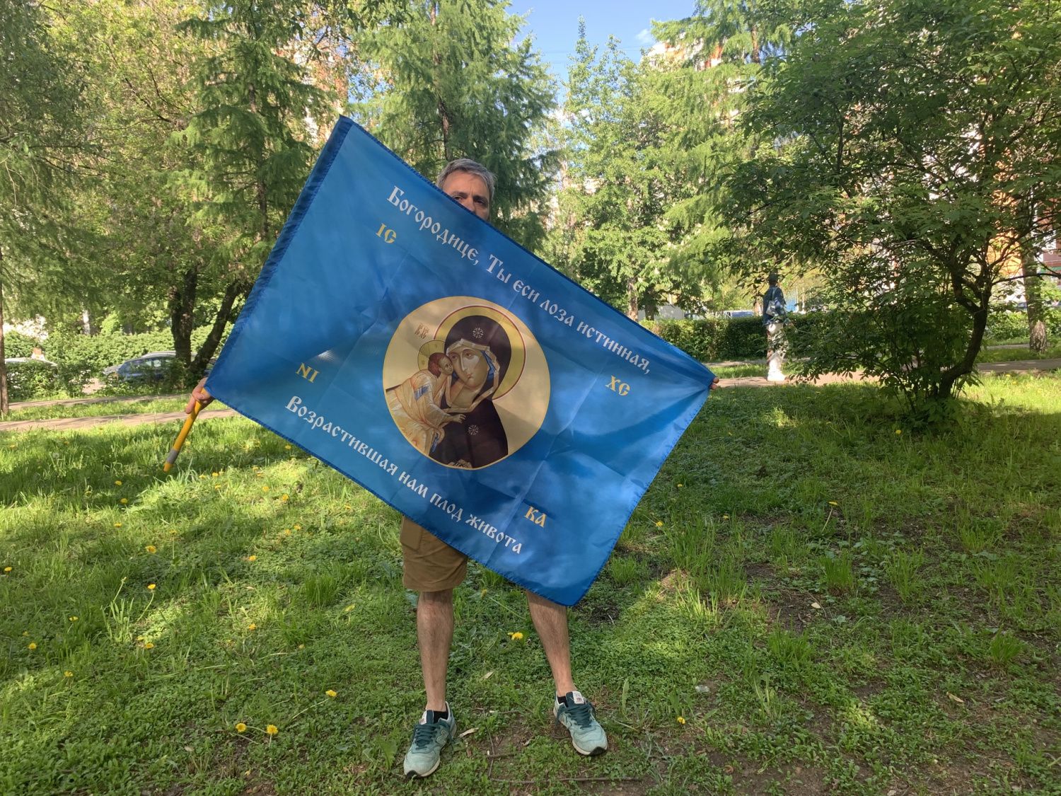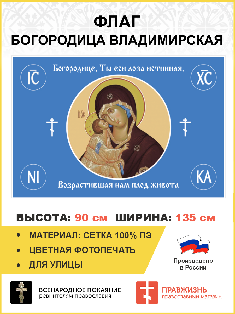 Флаг 123 Богородице, Ты еси лоза истинная 90х135 материал сетка для улицы