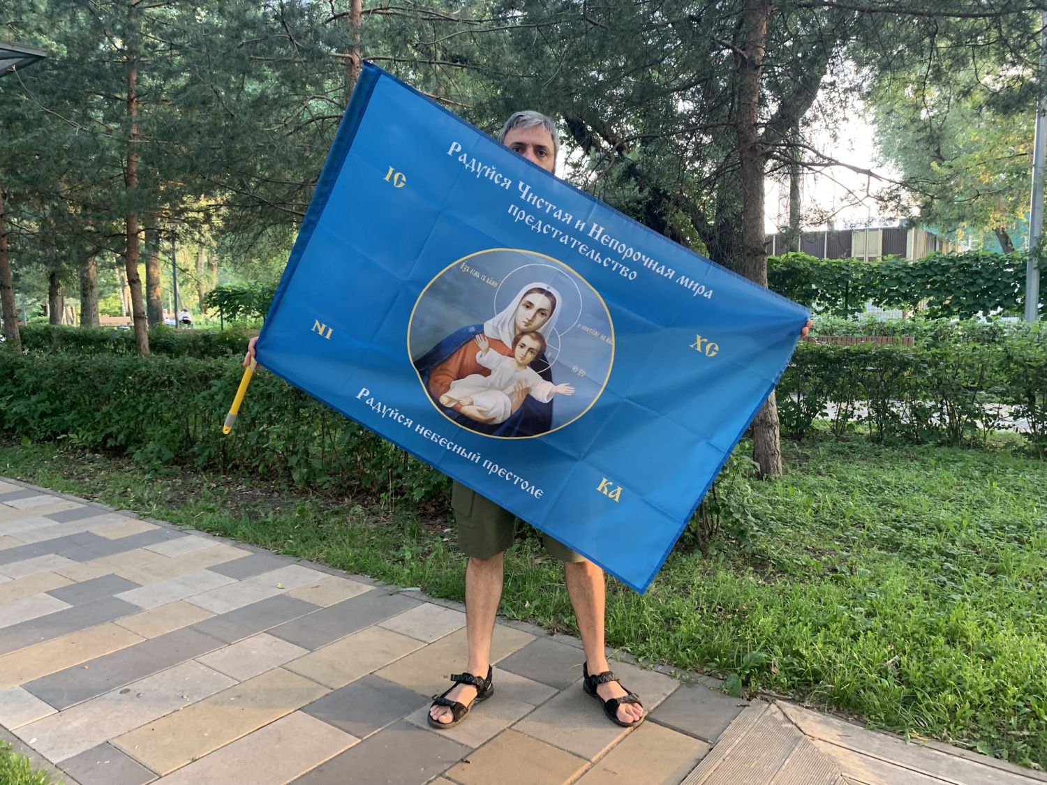 Флаг 190 Радуйся Чистая и Непорочная мира Предстательство 90х135 материал сетка для улицы