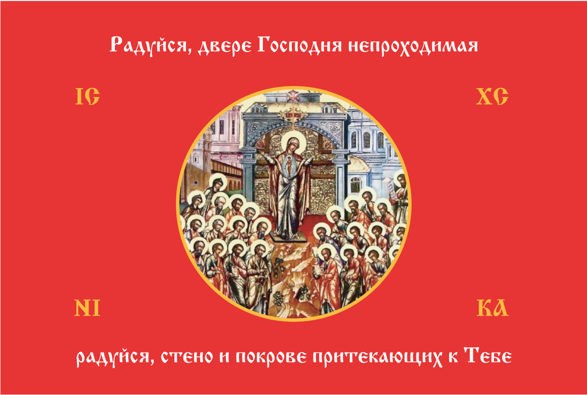 Флаг 231 Богородица Радуйся Двере Непроходимая на красном 90х135 материал сетка для улицы