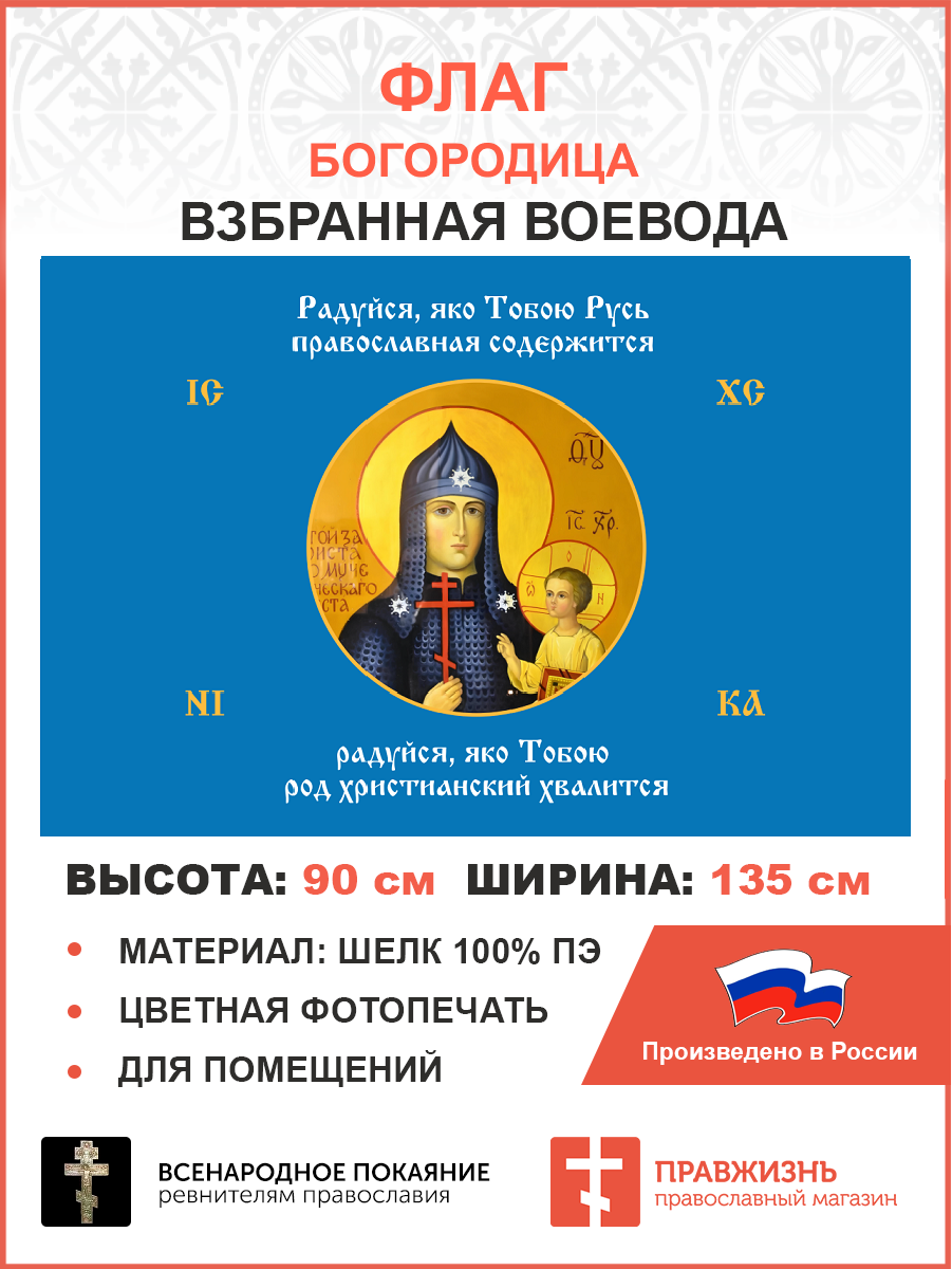 Флаг 260 Взбранной Воеводе Радуйся яко Тобою Русь православная содержится 90х135 материал шелк для п