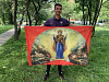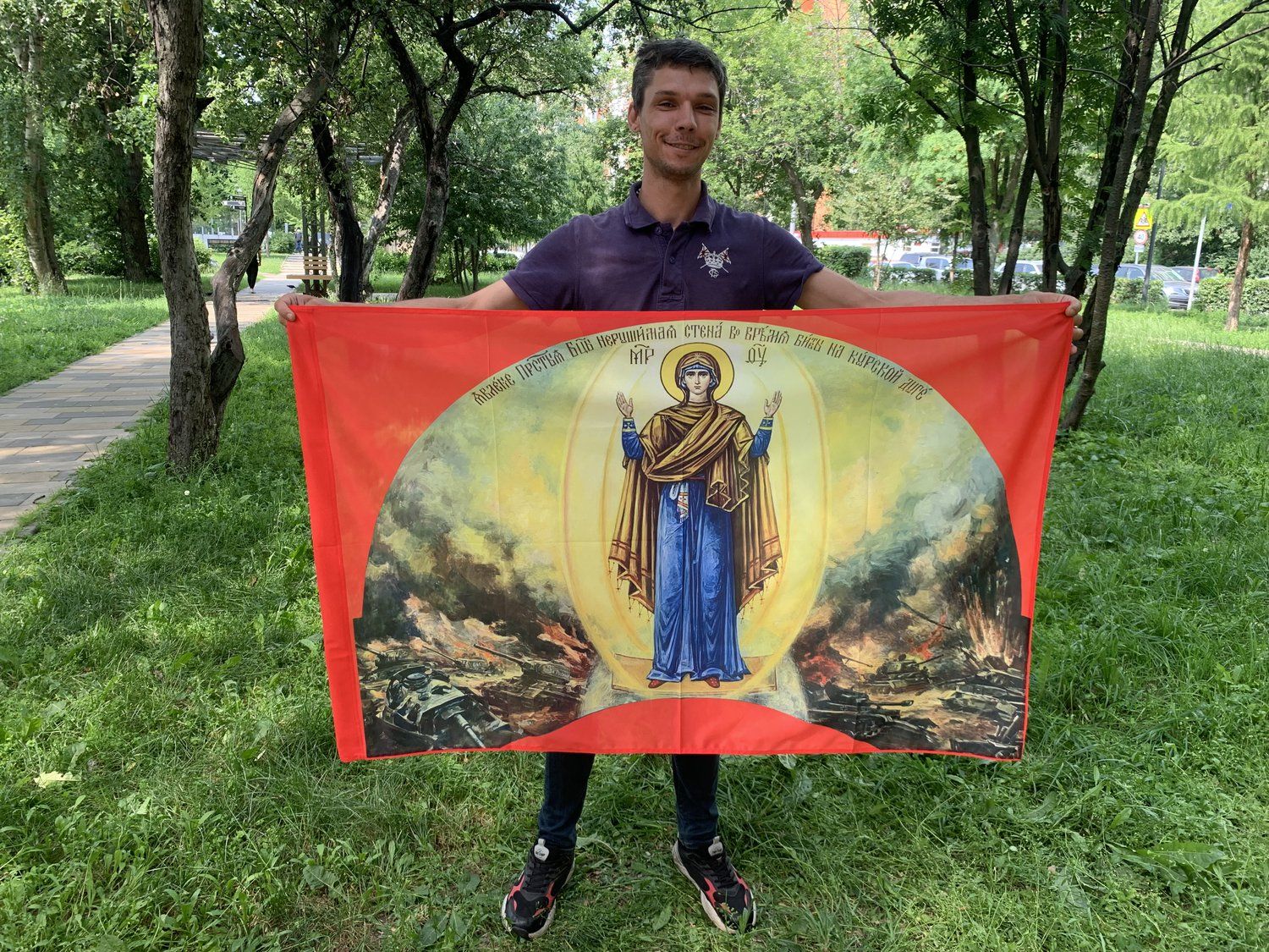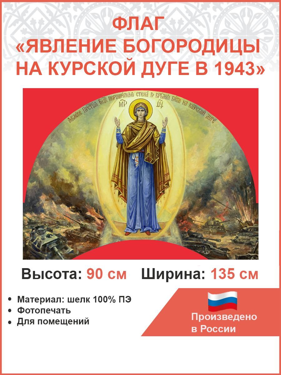 Флаг 030 Явление Богородицы на Курской дуге в 1943 на красном, 90х135 см, материал шелк для помещени