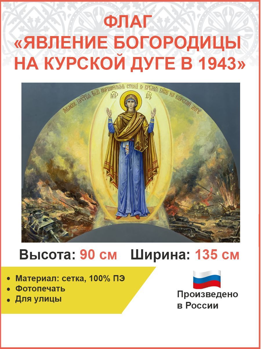 Флаг 032 Явление Богородицы на Курской дуге в 1943 на сером, 90х135 см, материал сетка для улицы