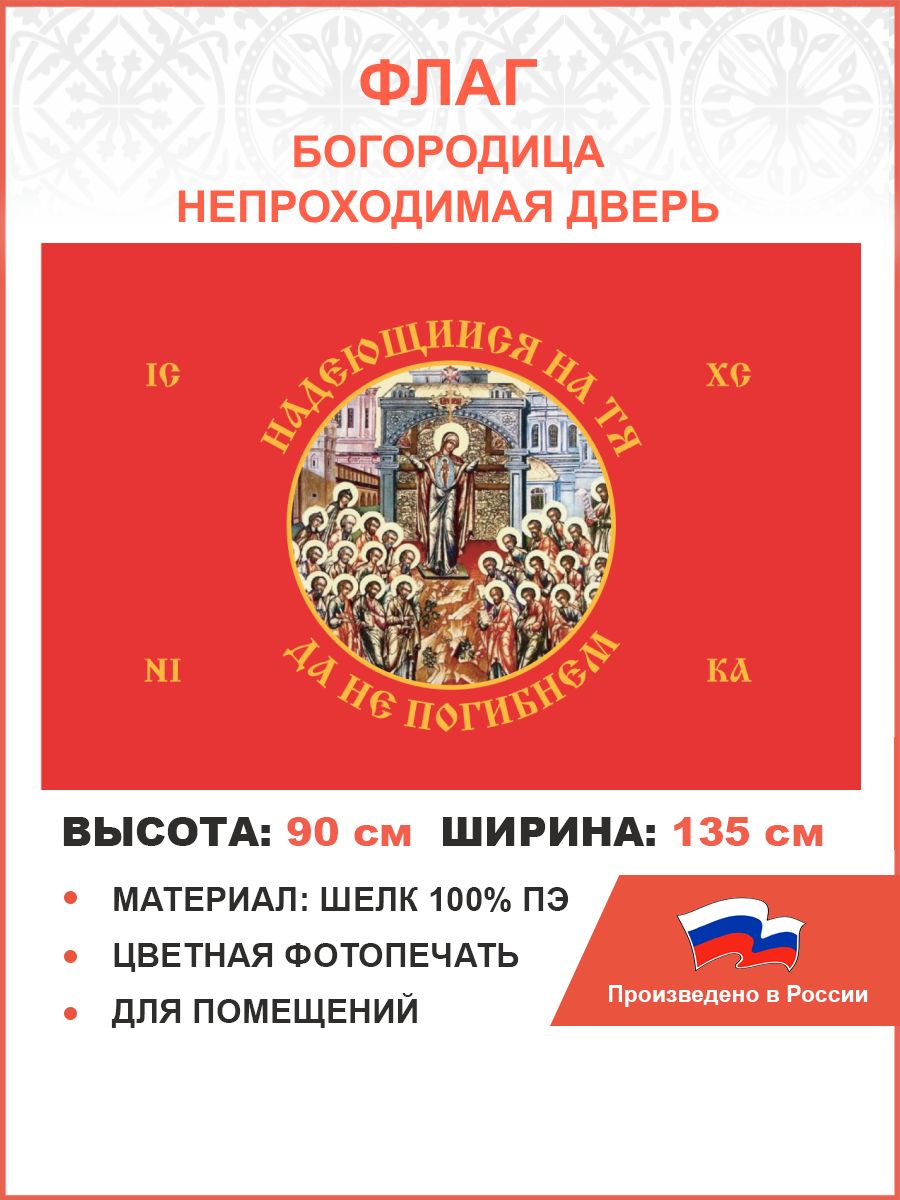 Флаг 230 Богородица Надеющиеся на Тя да не погибнем на красном 90х135 материал шелк для помещений
