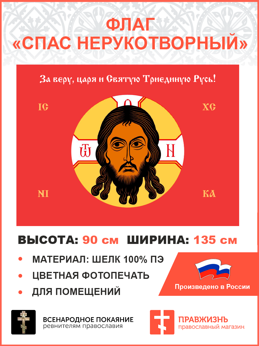 Флаг 010 Спас Нерукотворный, красный фон, 90х135 см, материал шелк для помещений