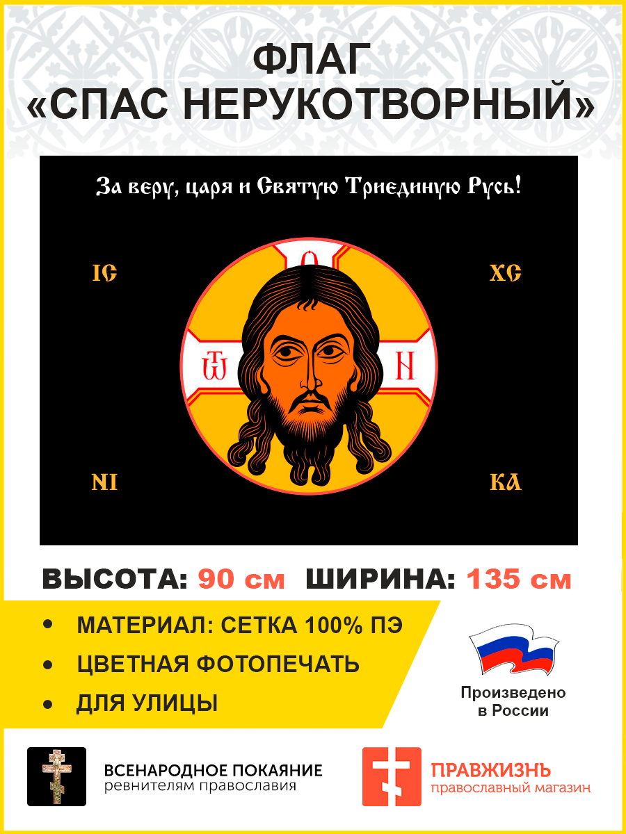 Флаг 012 Спас нерукотворный, черный фон, 90х135 см, материал сетка для улицы