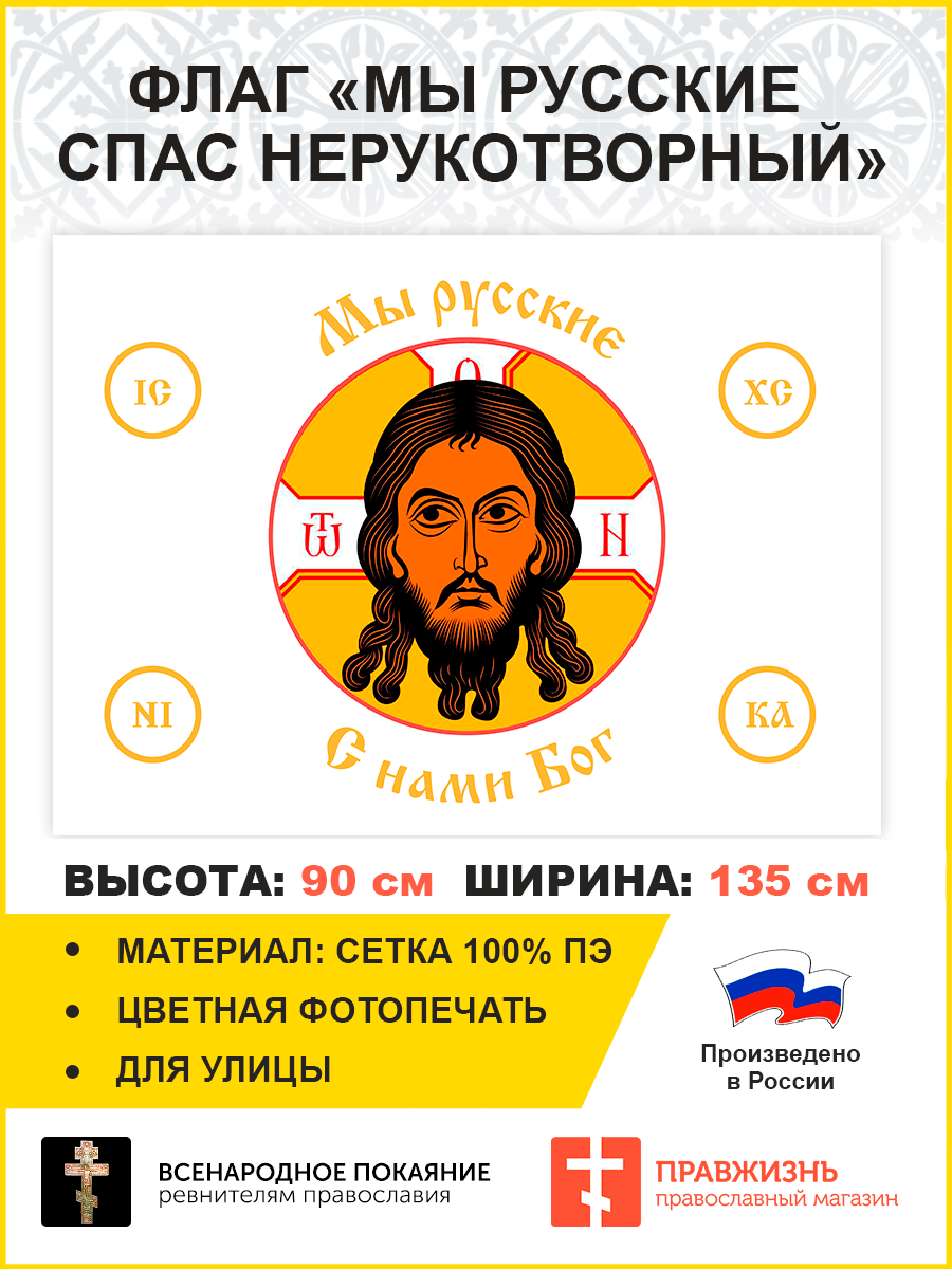 Флаг 019 Мы русские с нами Бог на белом, 90х135 см, материал сетка для улицы