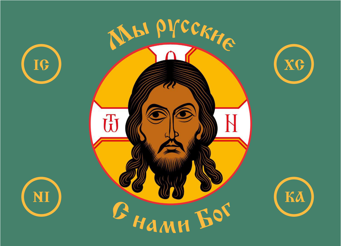 Флаг 020 Мы русские с нами Бог на зеленом,90х135 см, материал шелк для помещений