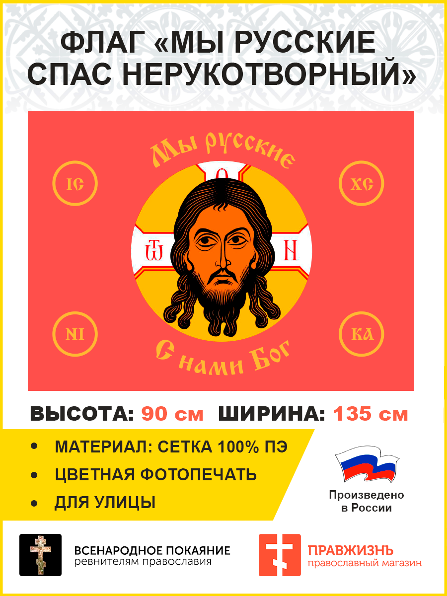 Флаг 021 Мы русские с нами Бог на красном, 90х135 см, материал сетка для улицы
