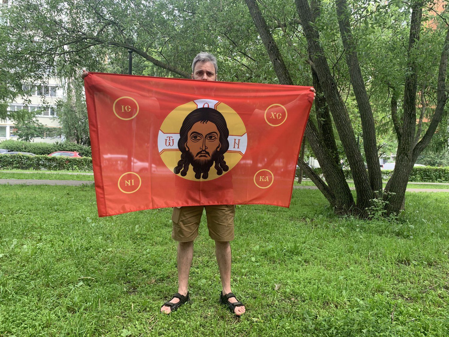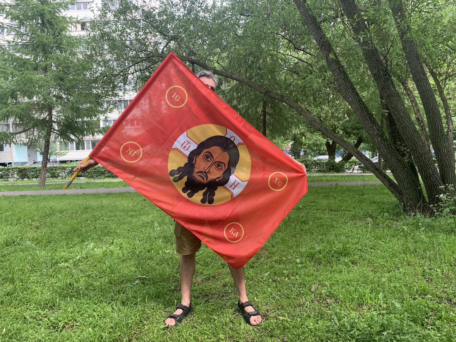 Флаг 021_1 Спас Нерукотворный без надписи на красном 90х135 см материал шелк для помещений