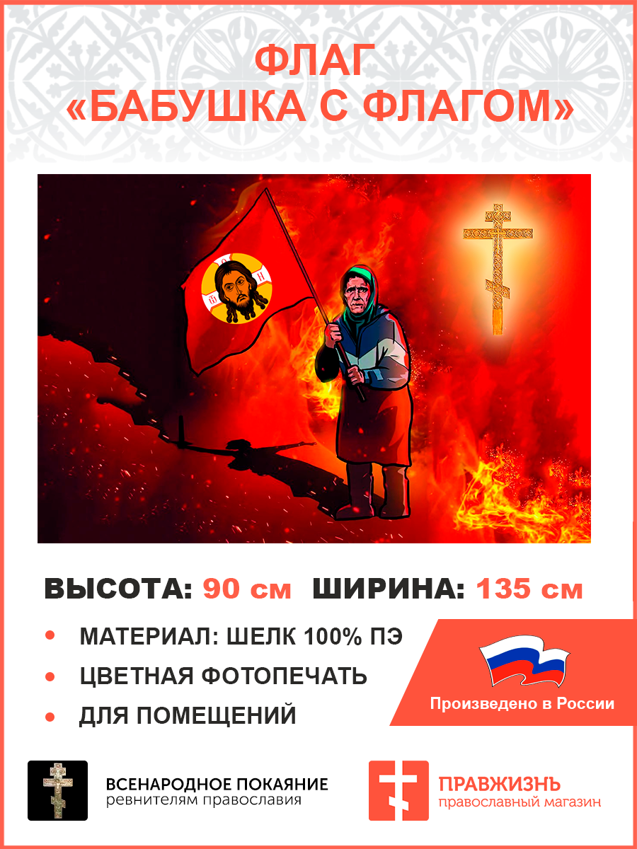 Флаг 064 Бабушка с флагом, 90х135 см, материал шелк для помещений