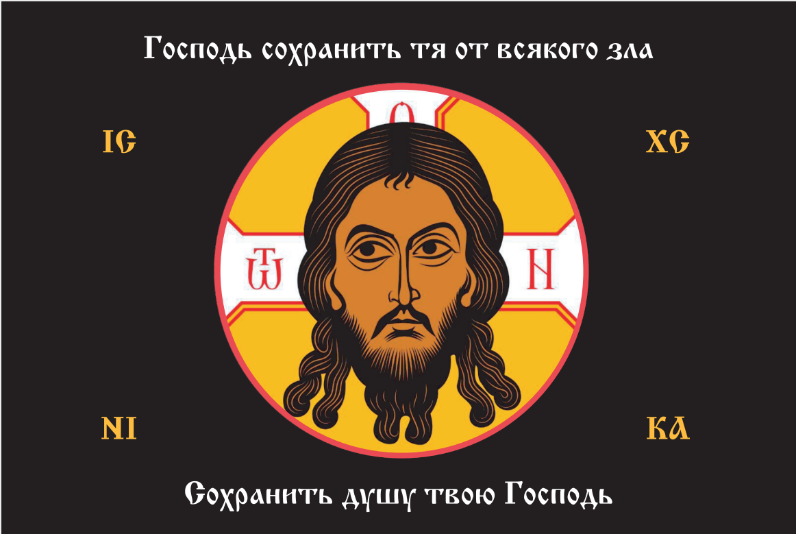 Флаг 092 Спас Нерукотворный Господь сохранит тя ,черный , 90х135, материал сетка для улицы