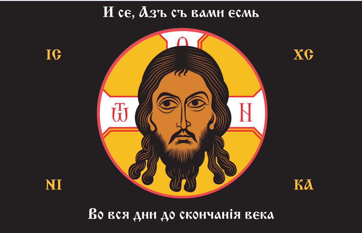 Флаг 093 Спас Нерукотворный И се Азъ с вами,черный, 90х135, материал шелк для помещений