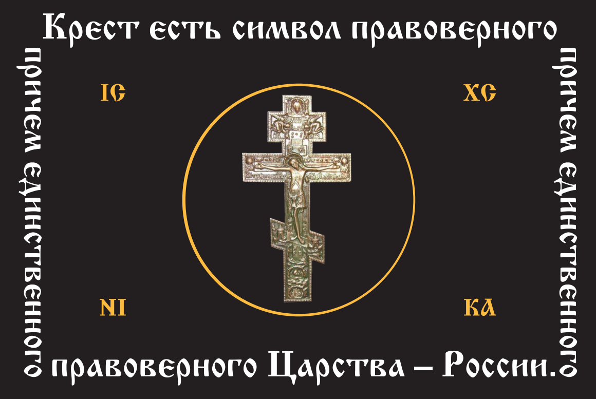 Флаг 137 Крест есть символ правоверного Царства России черный 90х135 материал шелк для помещений