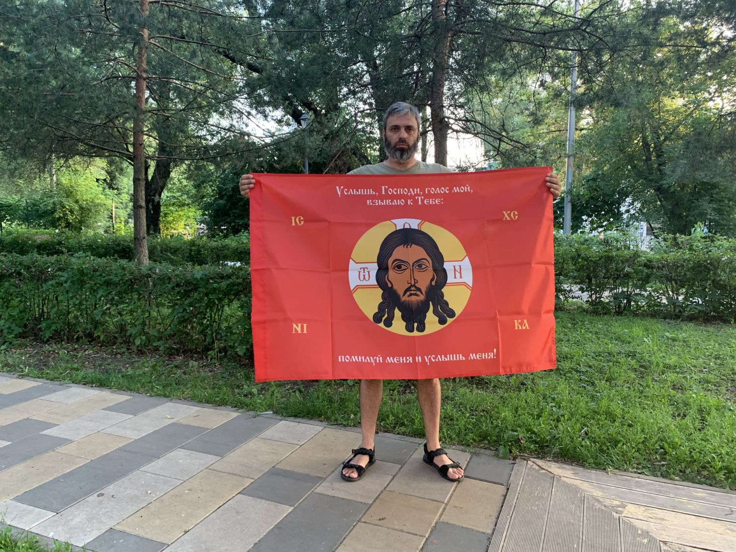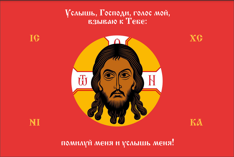 Флаг 196 Спас Нерукотворный Услышь Господь голос мой на красном 90х135 материал шелк для помещений