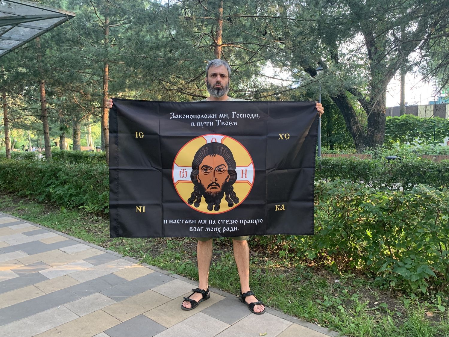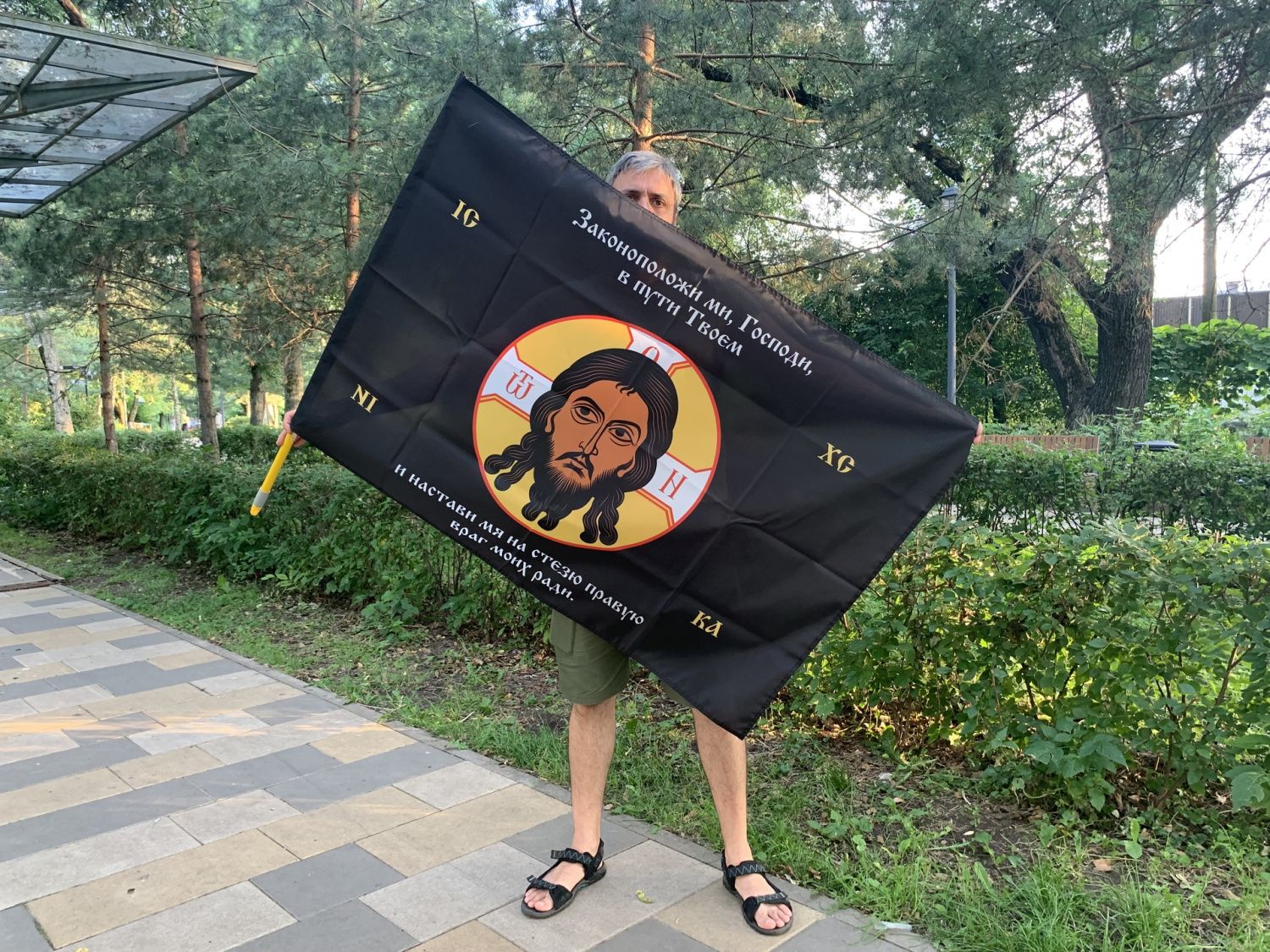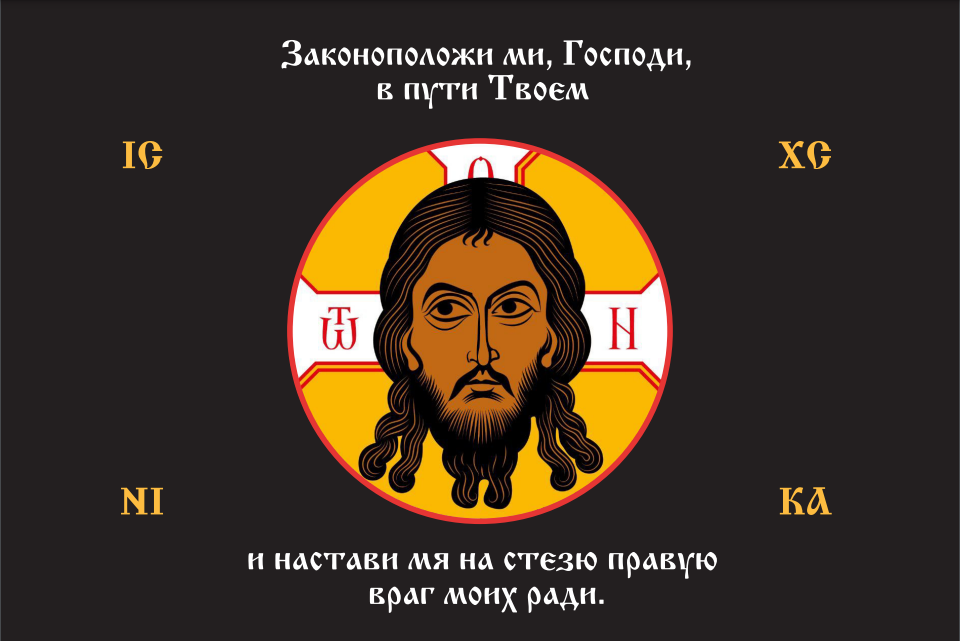 Флаг 197 Спас Нерукотворный Настави мя на стезю правую на черном 90х135 материал шелк для помещений