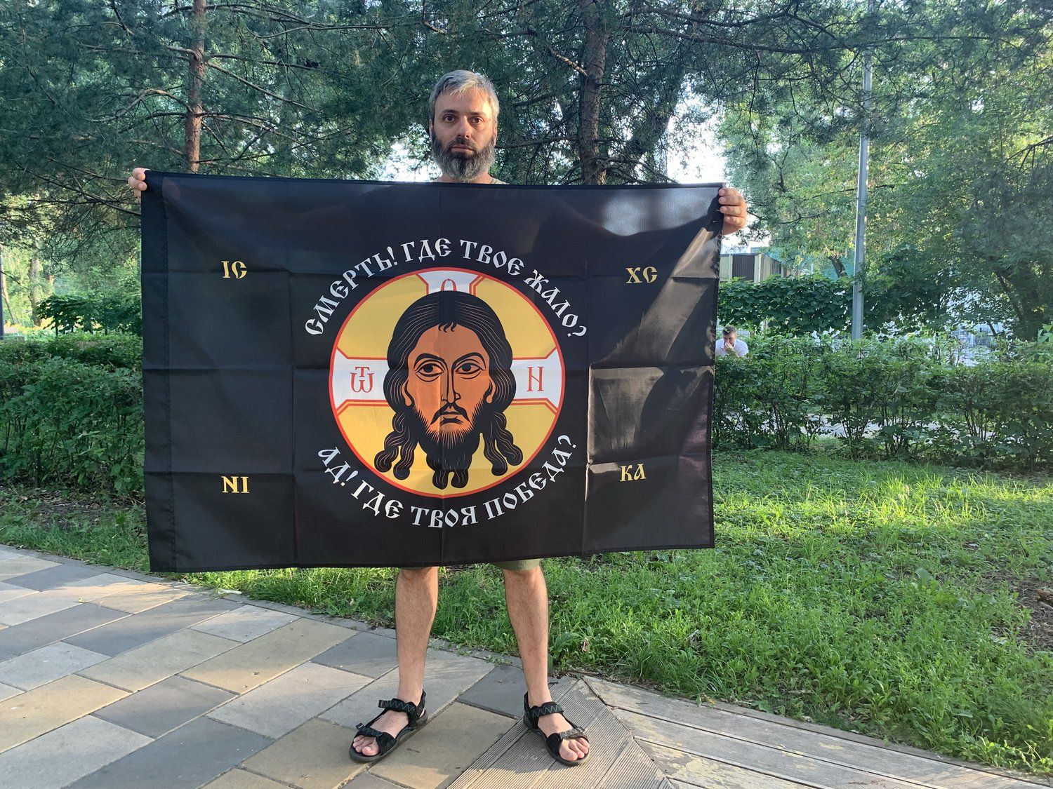 Флаг 201 Спас Нерукотворный Смерть где твое жало на черном 90х135 материал сетка для улицы