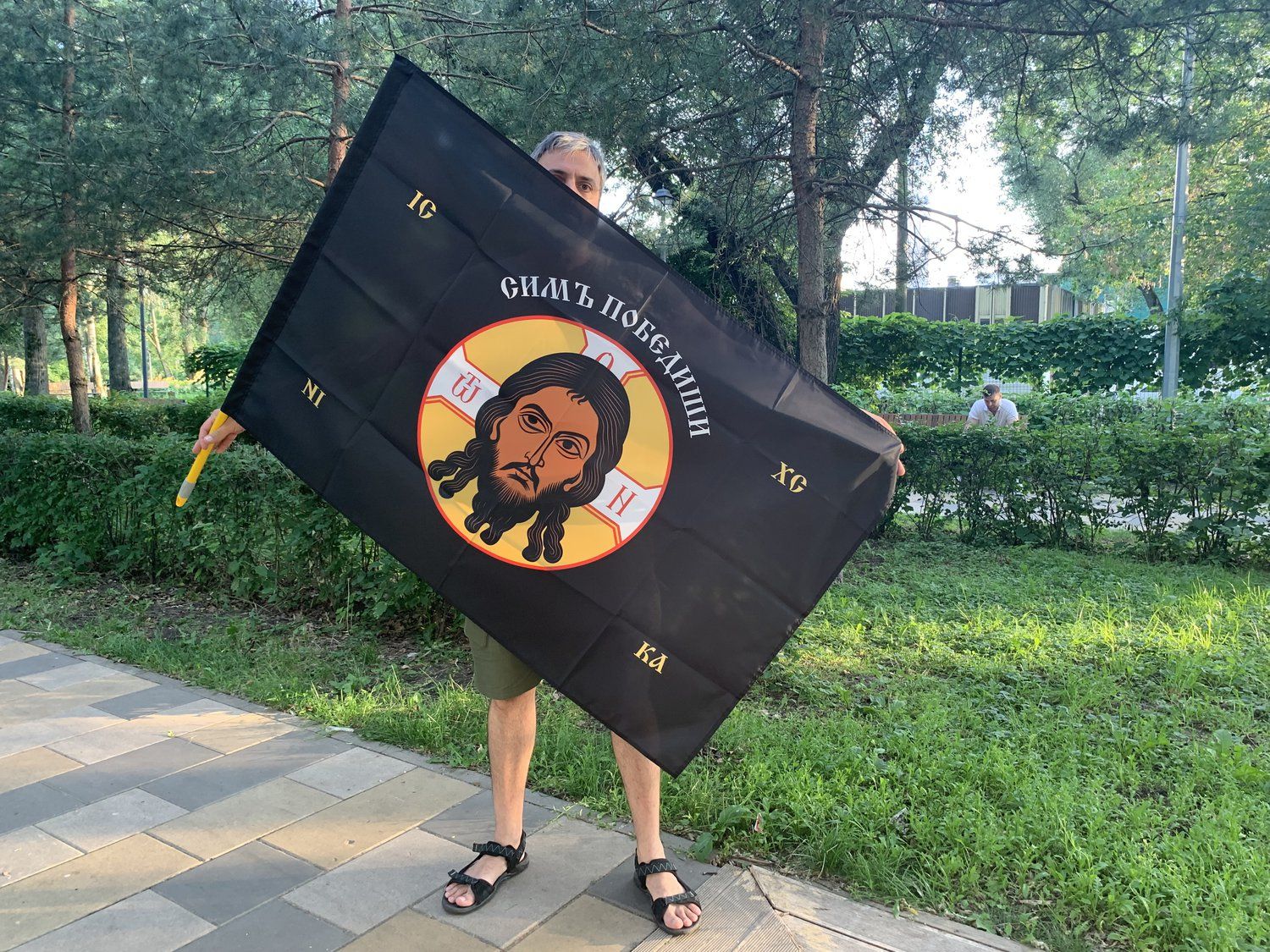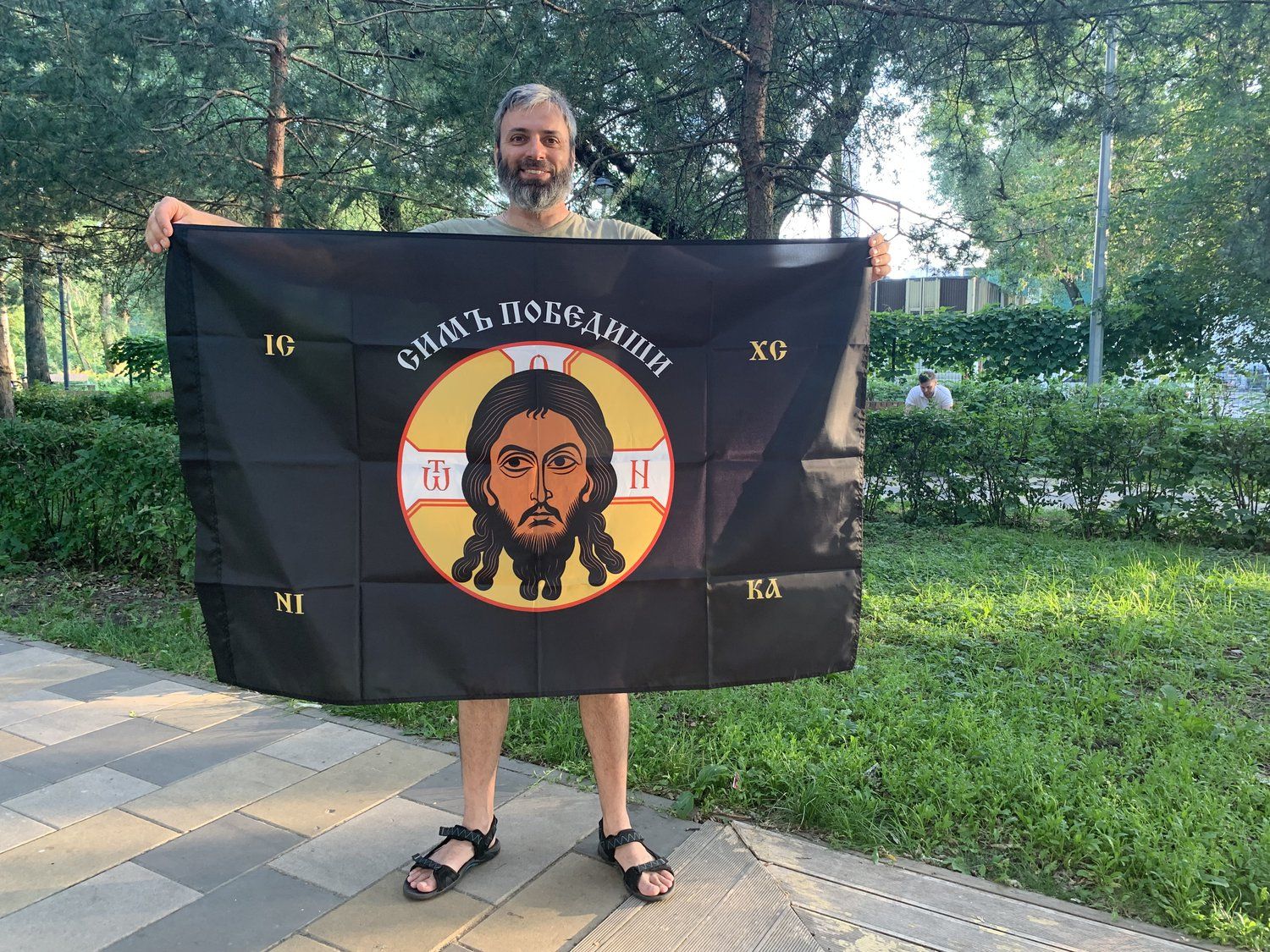 Флаг 204 Спас Нерукотворный Симъ Победиши на черном 90х135 материал сетка для улицы