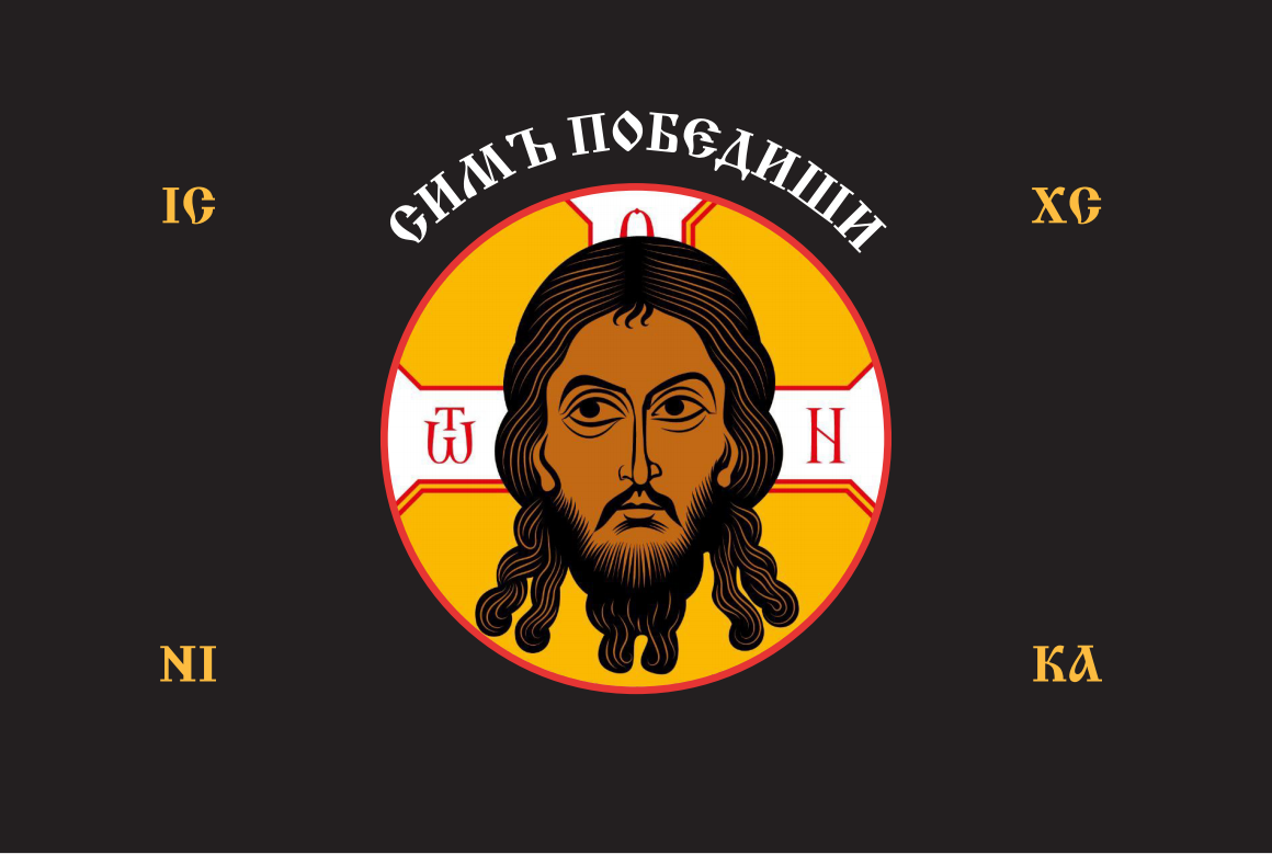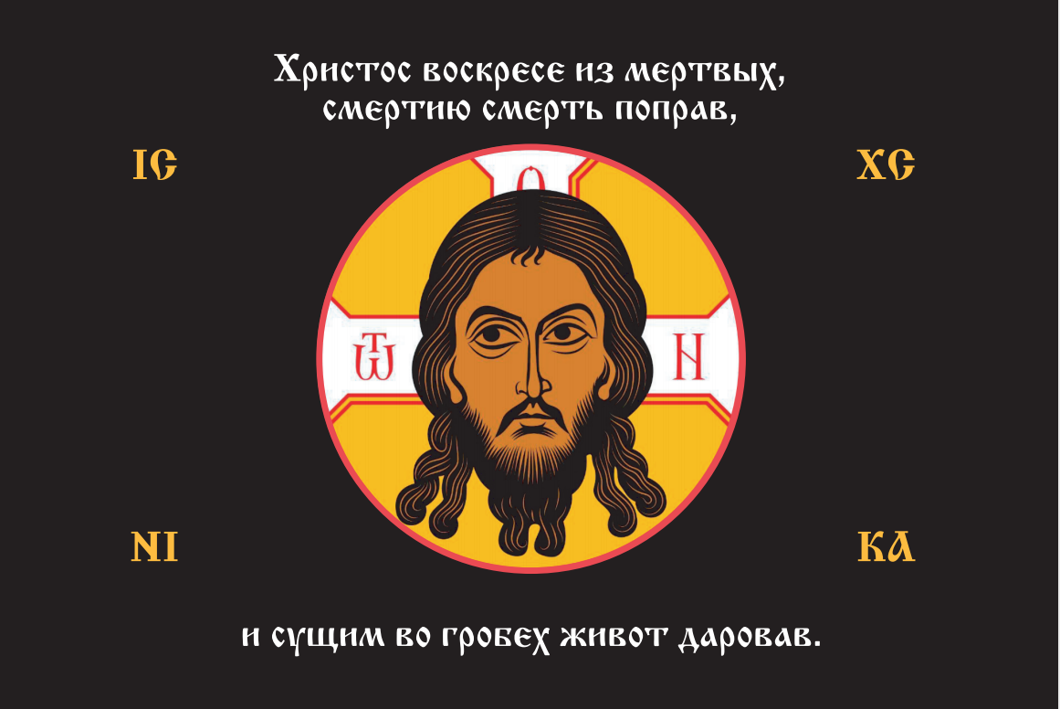 Флаг 204 Спас Нерукотворный Симъ Победиши на черном 90х135 материал шелк для помещений