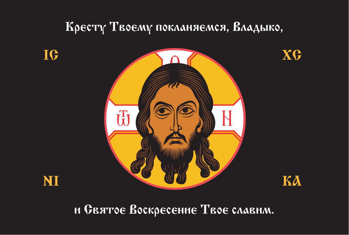 Флаг 207 Спас Нерукотворный Кресту Твоему поклоняемся на черном 90х135 материал шелк для помещений