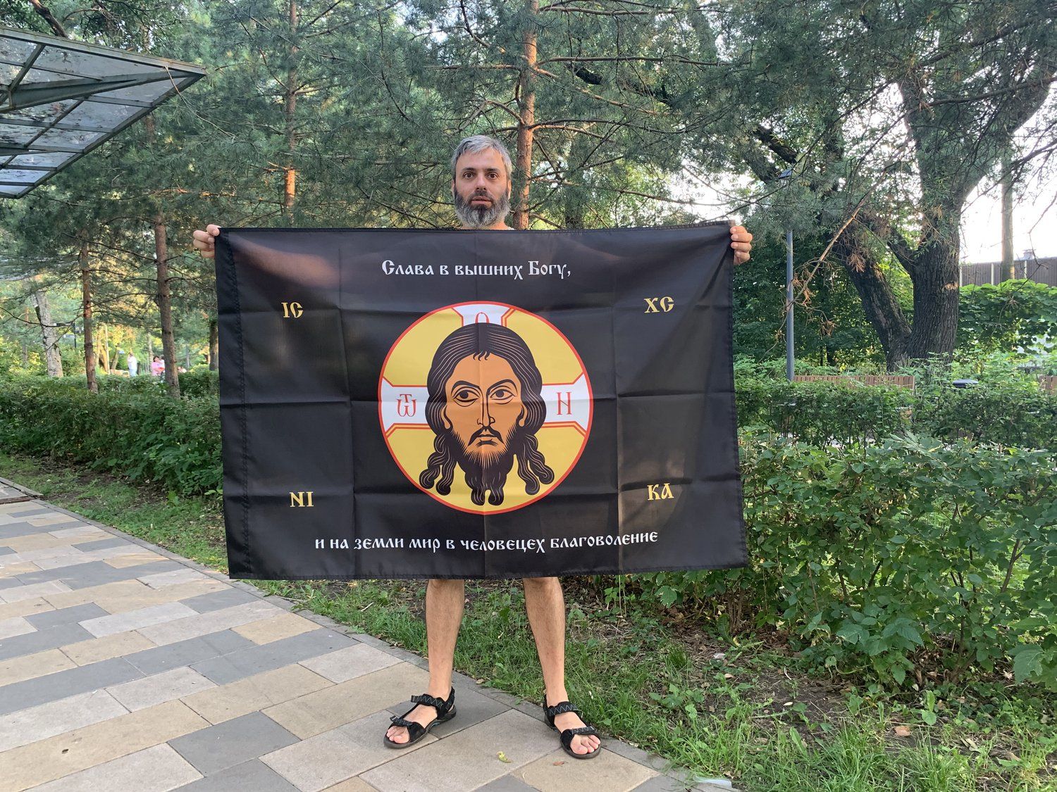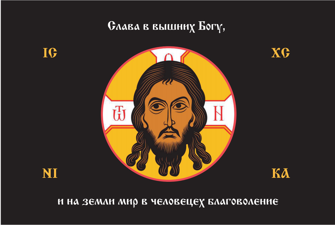 Флаг 208 Спас Нерукотворный Слава в вышних Богу на черном 90х135 материал сетка для улицы