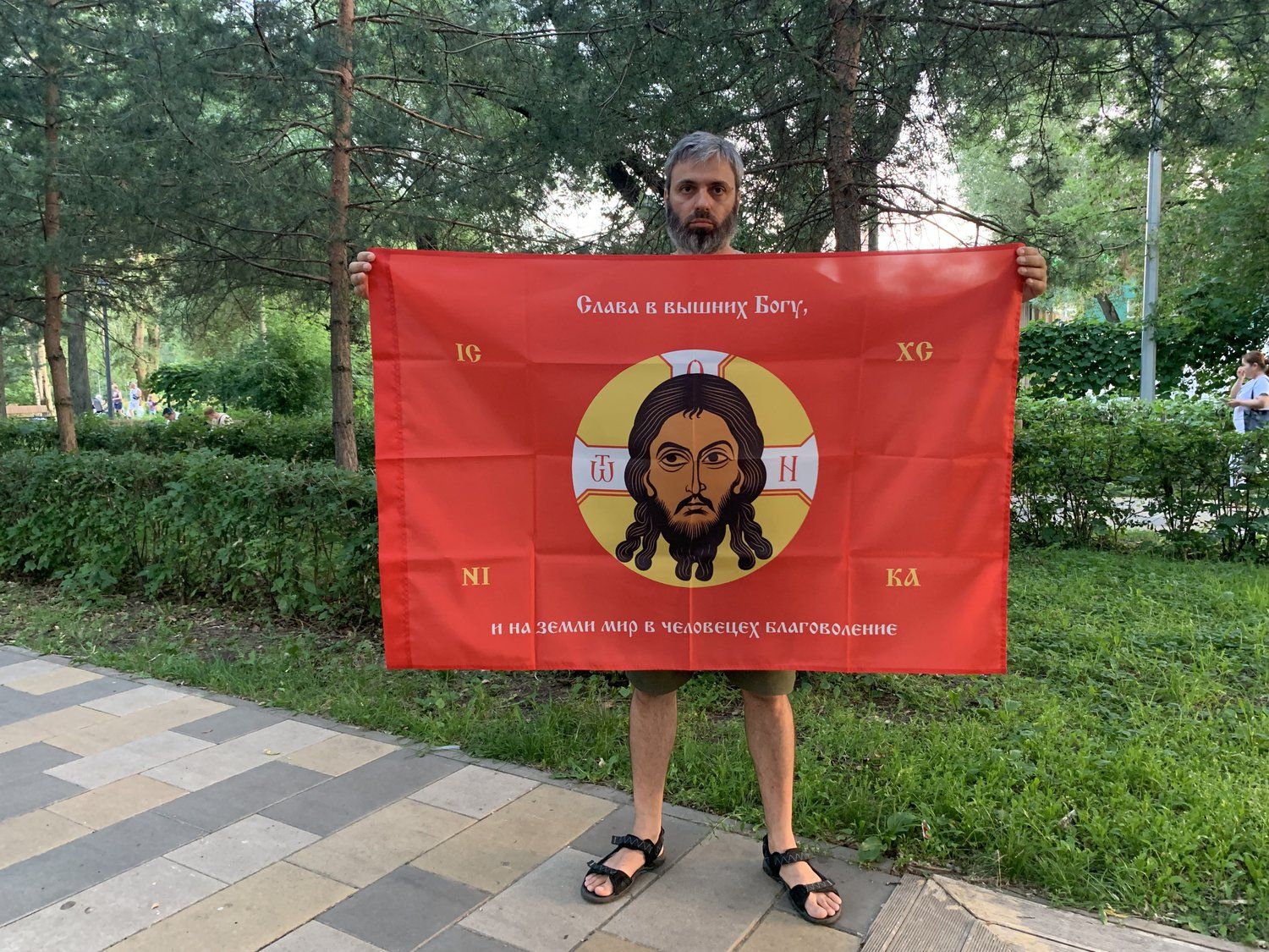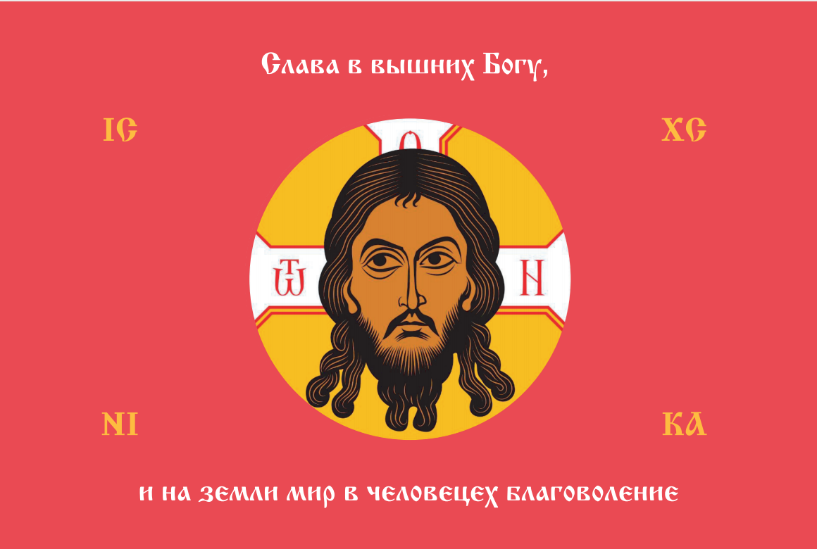 Флаг 208 Спас Нерукотворный Слава в вышних Богу на красном 90х135 материал шелк для помещений