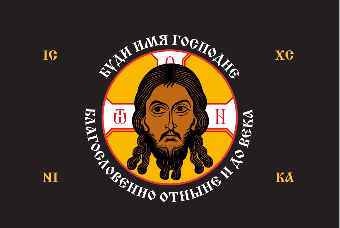 Флаг 209 Спас Нерукотворный Буди имя Господне на черном 90х135 материал шелк для помещений
