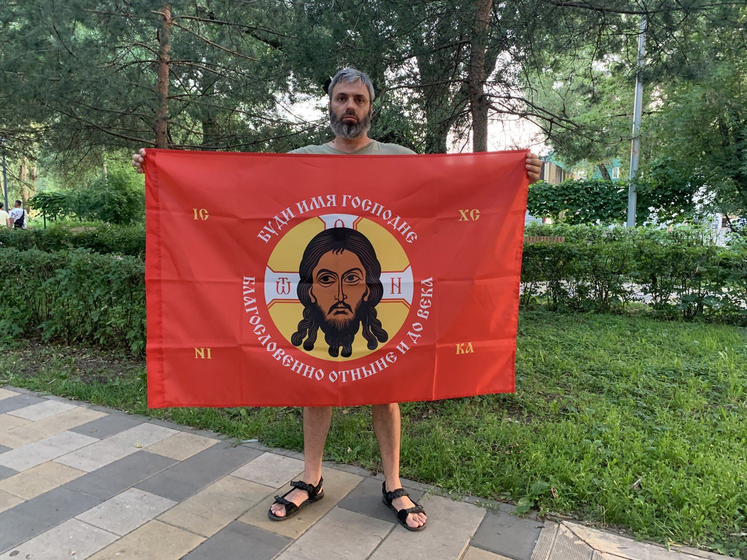Флаг 209 Спас Нерукотворный Буди имя Господне на красном 90х135 материал сетка для улицы