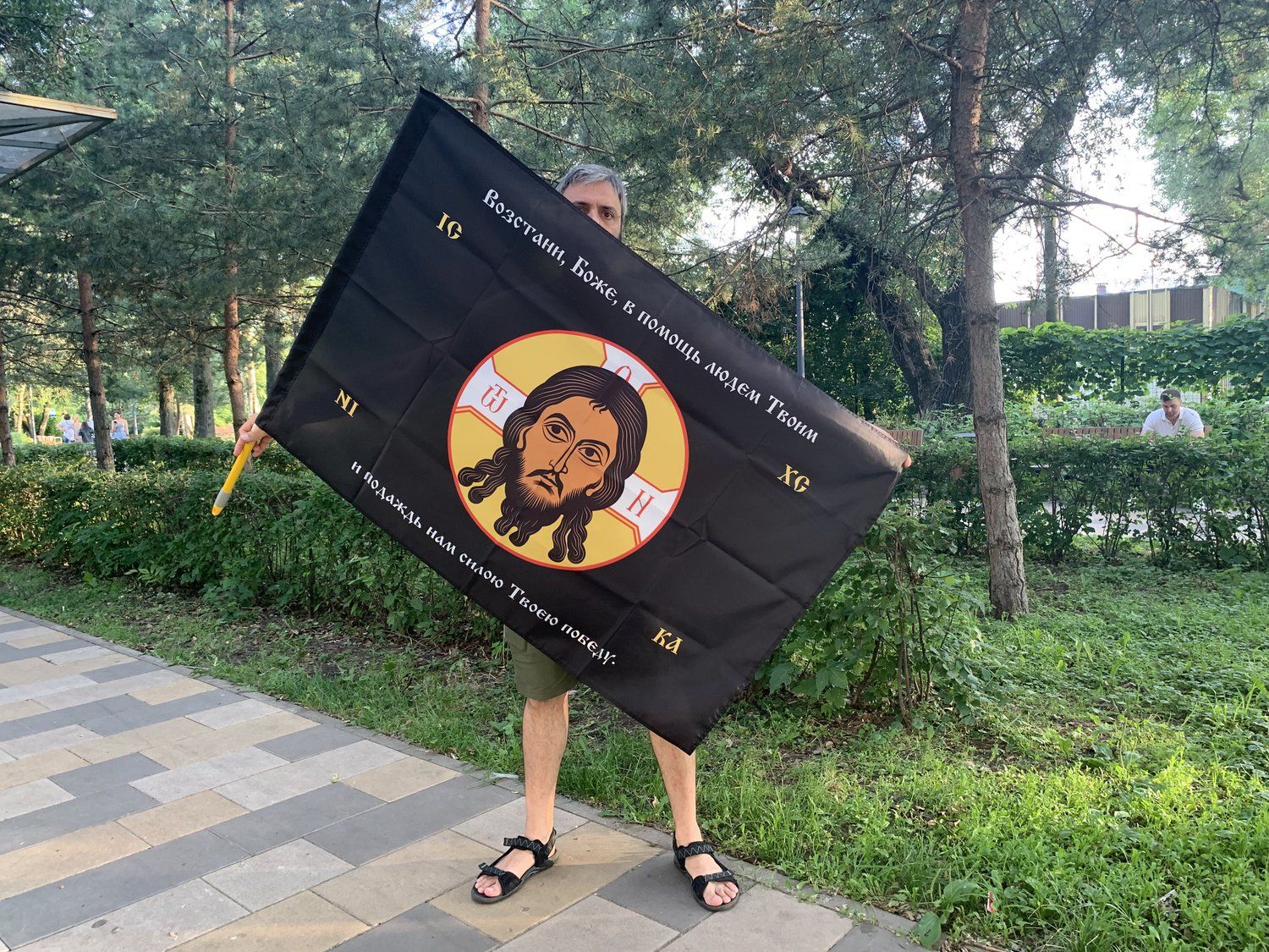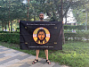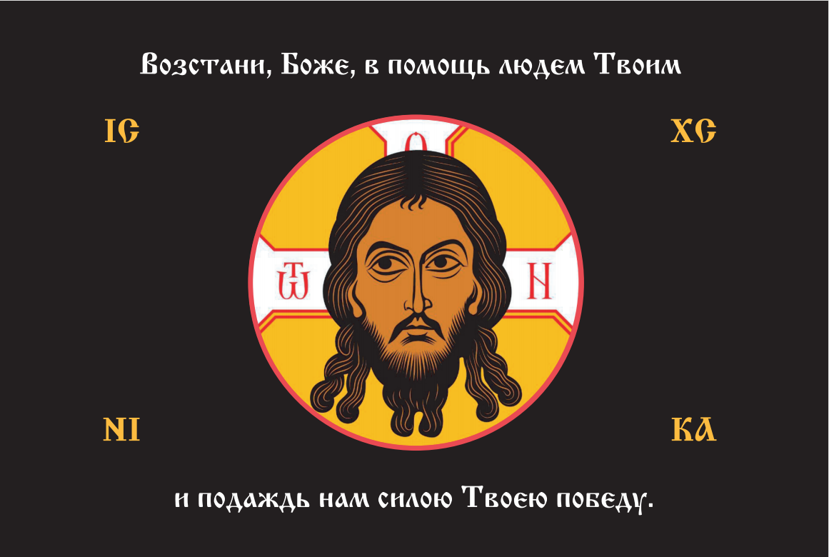 Флаг 215 Спас Нерукотворный Возстани Боже в помощь людем Твоим на черном 90х135 материал шелк для помещений