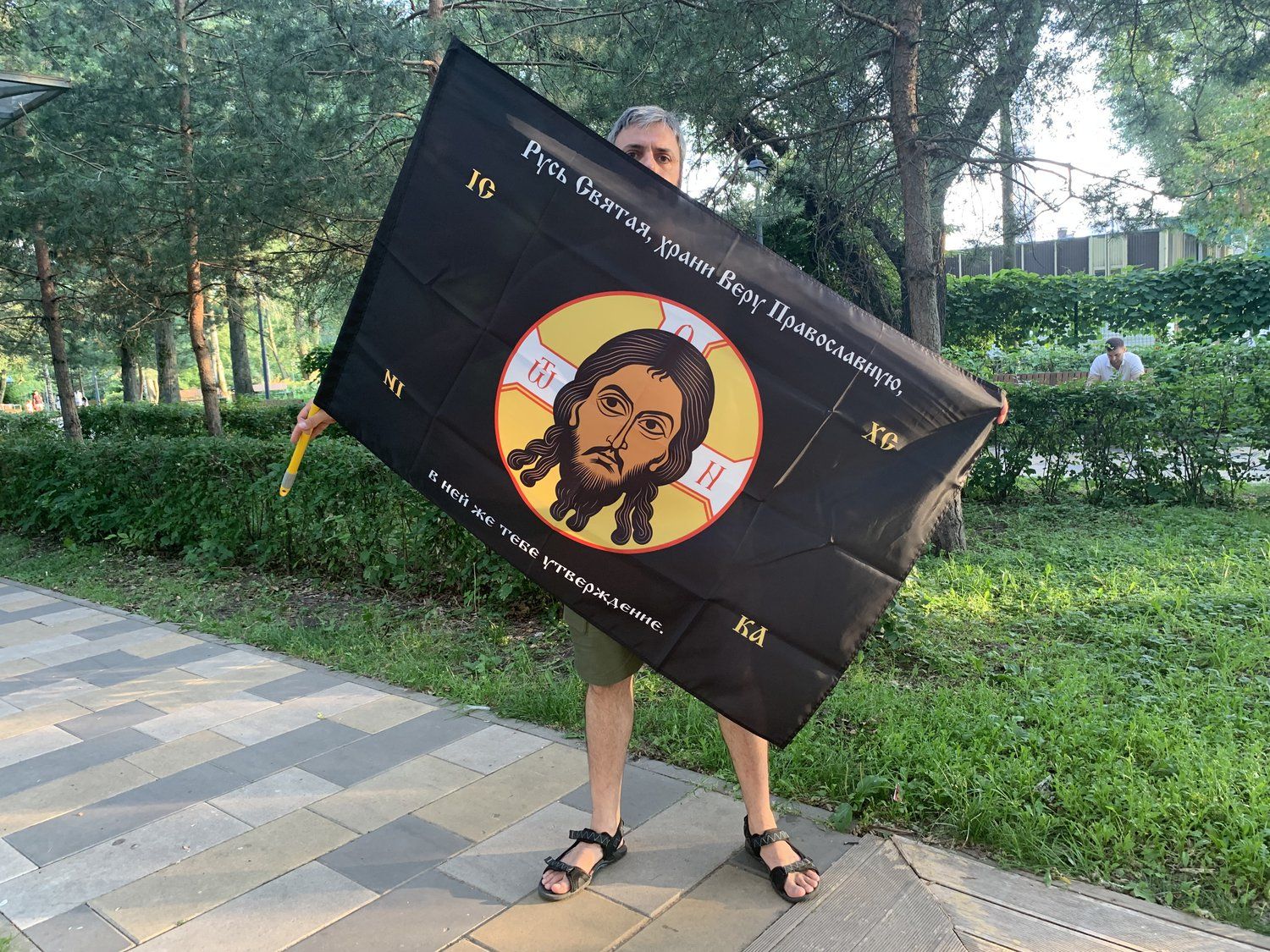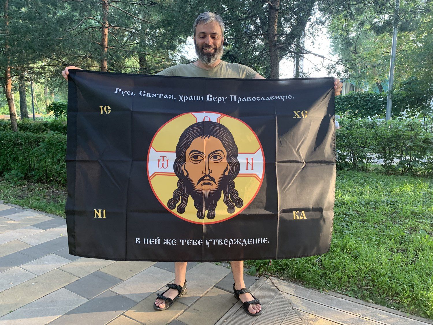 Флаг 216 Спас Нерукотворный Русь Святая храни Веру Православную на черном 90х135 материал сетка для улицы