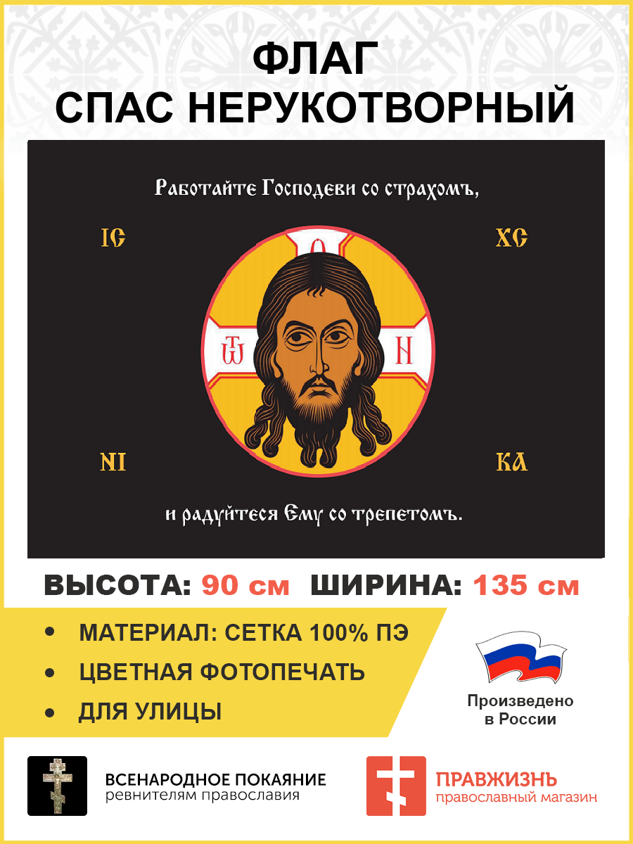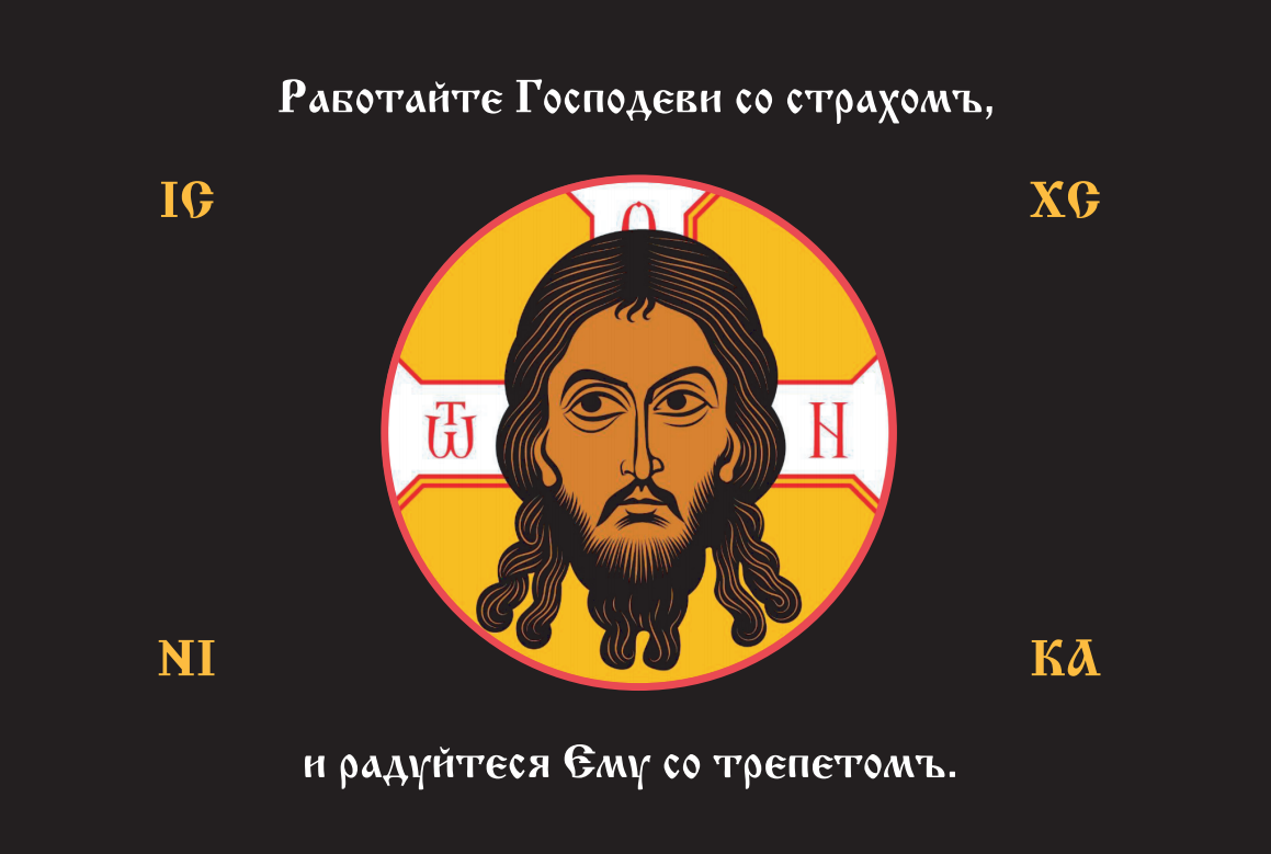 Флаг 217 Спас Нерукотворный Работайте Господеви со страхом на черном 90х135 материал сетка для улицы