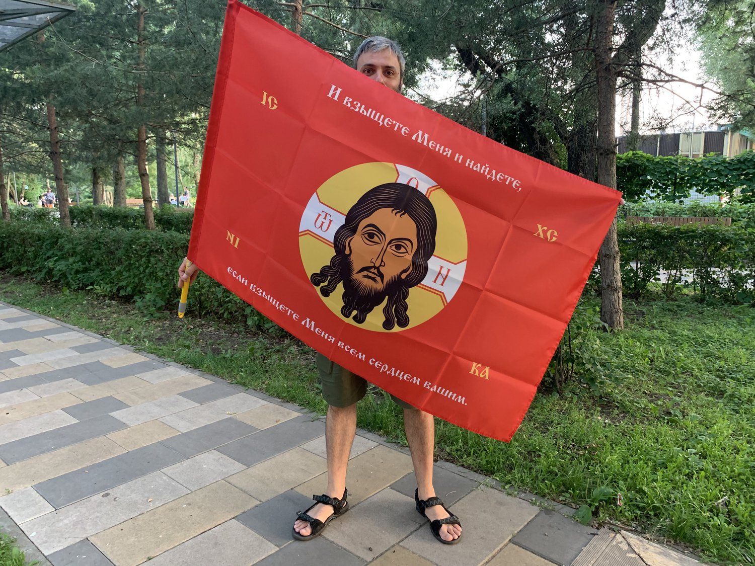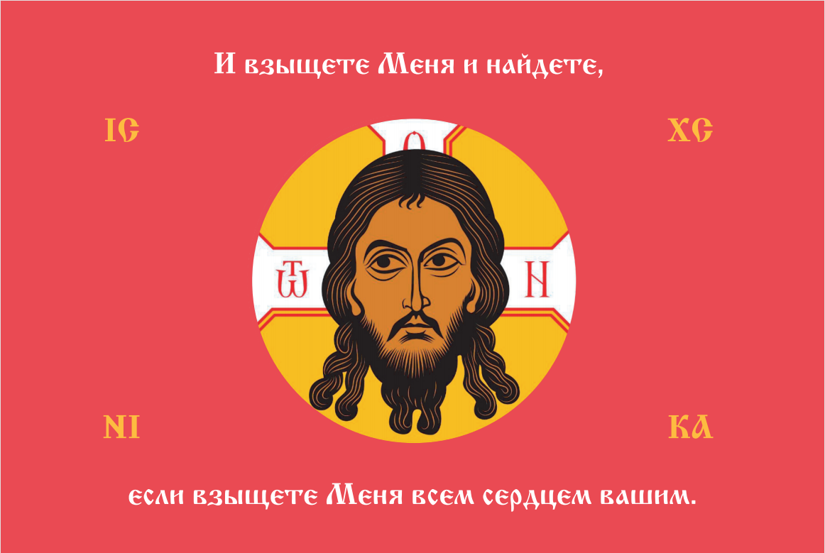 Флаг 218 Спас Нерукотворный Взыщете Меня и найдете на красном 90х135 материал шелк для помещений