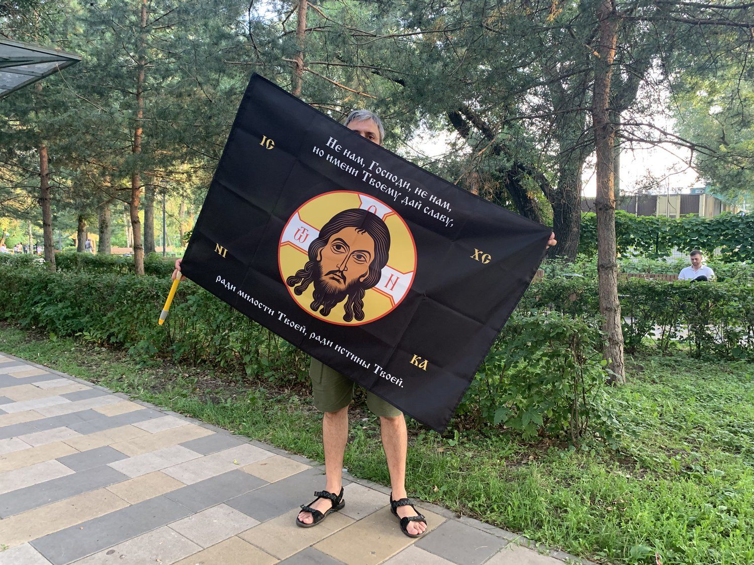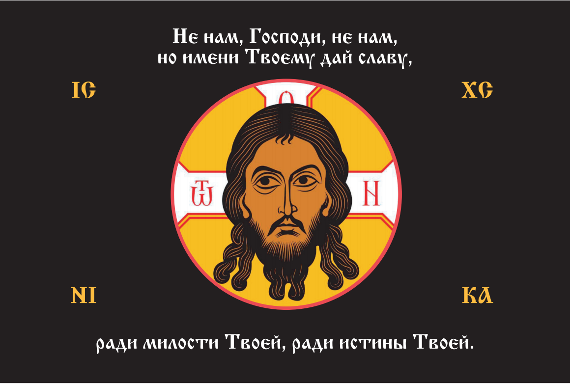 Флаг 220 Спас Нерукотворный Не нам Господи но имени Твоему на черном 90х135 материал сетка для улицы