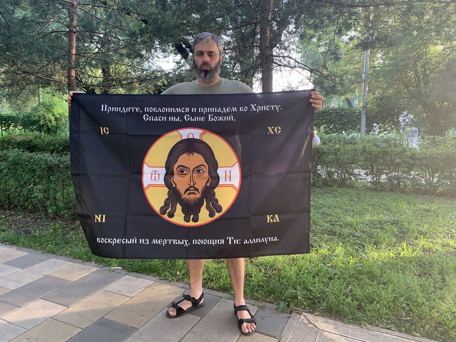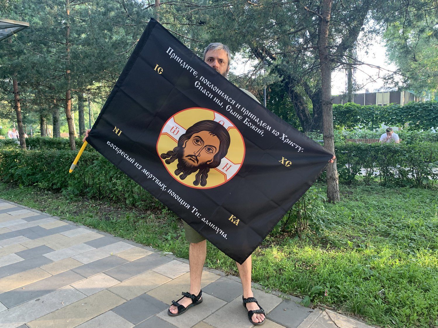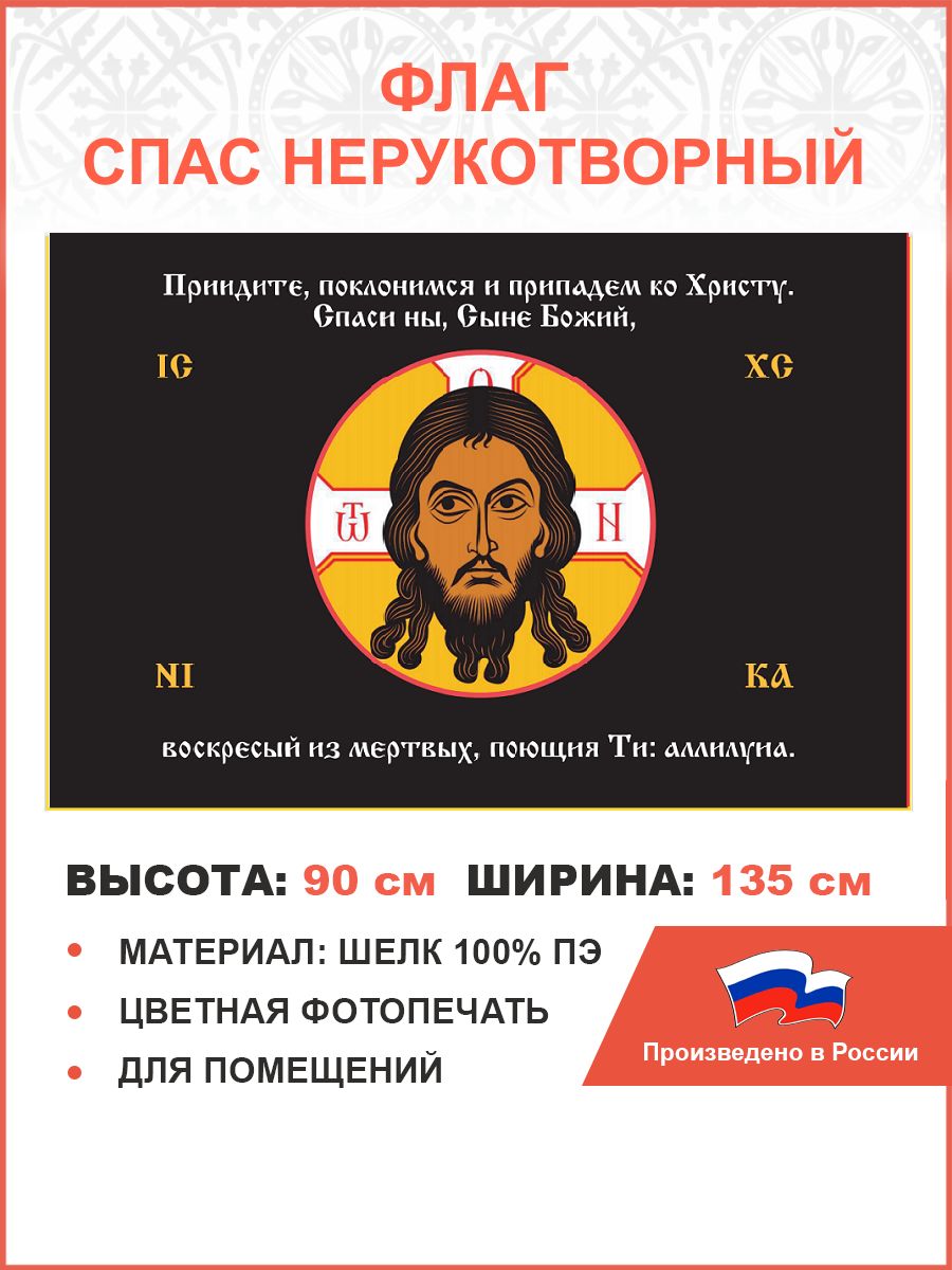 Флаг 223 Спас Нерукотворный Приидите поклонимся на черном 90х135 материал шелк для помещений