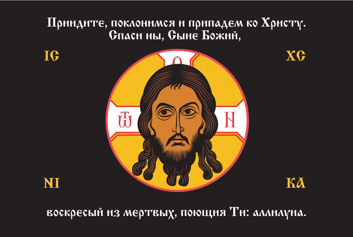 Флаг 223 Спас Нерукотворный Приидите поклонимся на черном 90х135 материал шелк для помещений