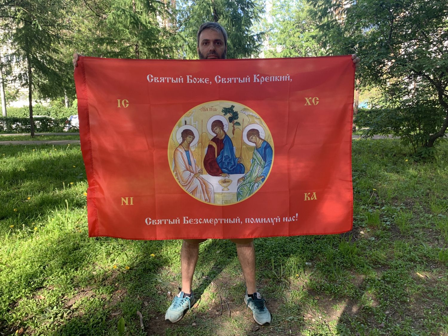 Флаг 147 Святый Боже Святый Крепкий Святый Безсмертный помилуй нас красный 90х135 материал шелк для помещений