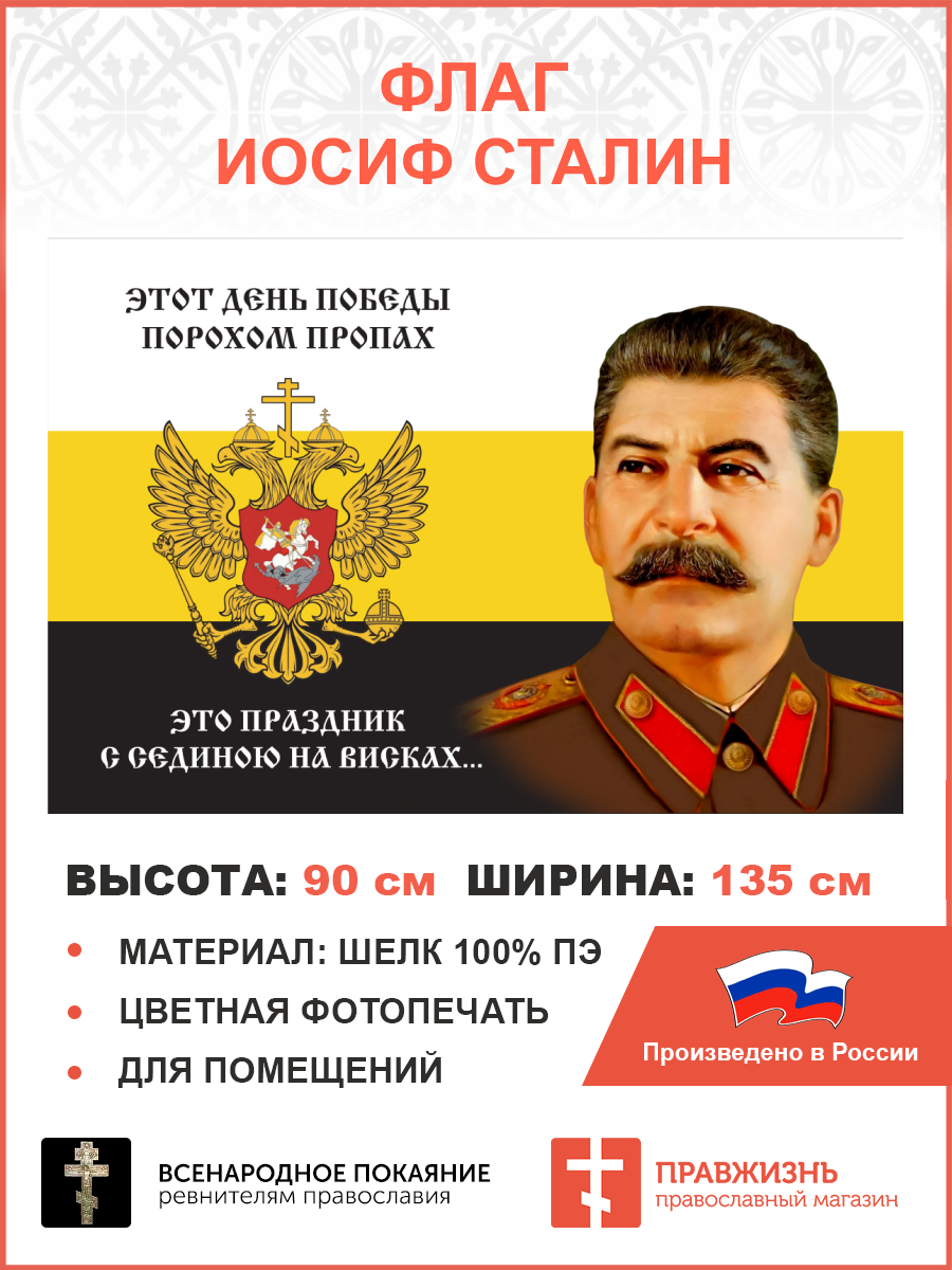 Флаг 130 Сталин Этот День Победы порохом пропах 90х135 материал шелк для помещений
