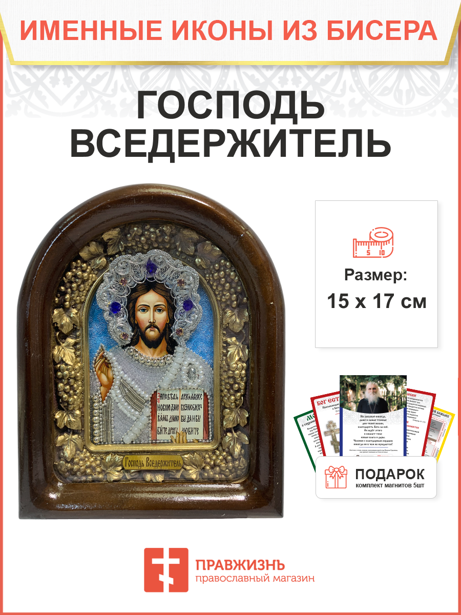 Икона 214 Господь Вседержитель бисер в белом C107(С)_YAP