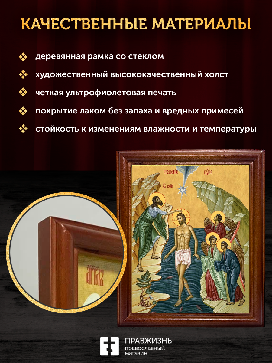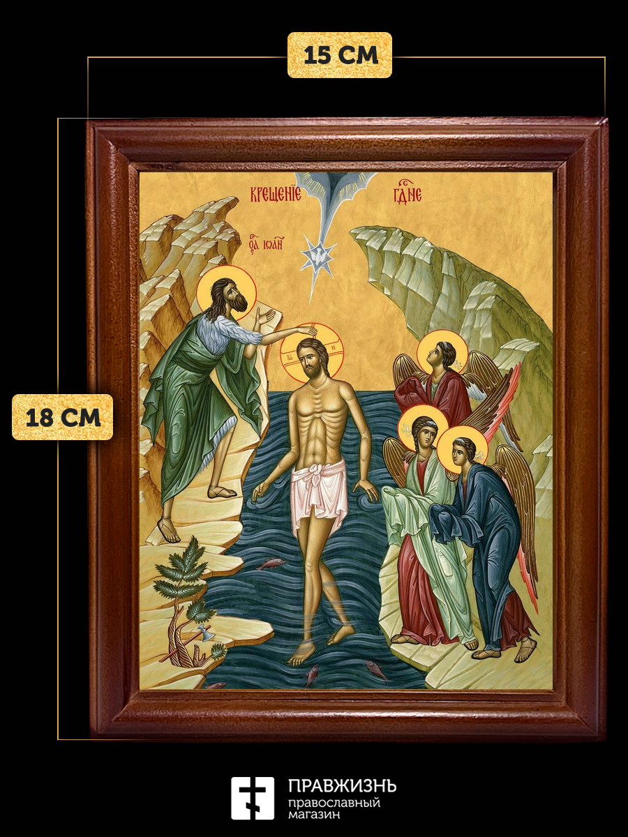 Икона Крещение Господне Богоявление, деревянная рамка со стеклом 15х18х2 см 1222
