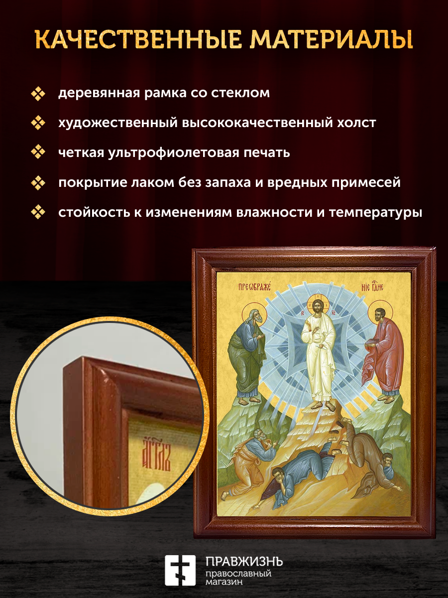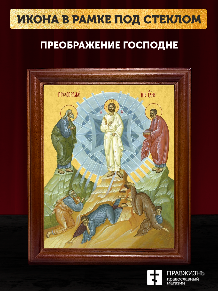 Икона Преображение Господне, деревянная рамка со стеклом 15х18х2 см 1230