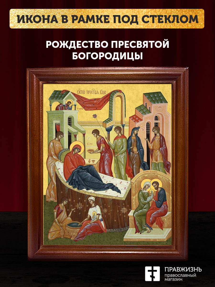 Икона Рождество Пресвятой Богородицы, деревянная рамка со стеклом 15х18х2 см 1128